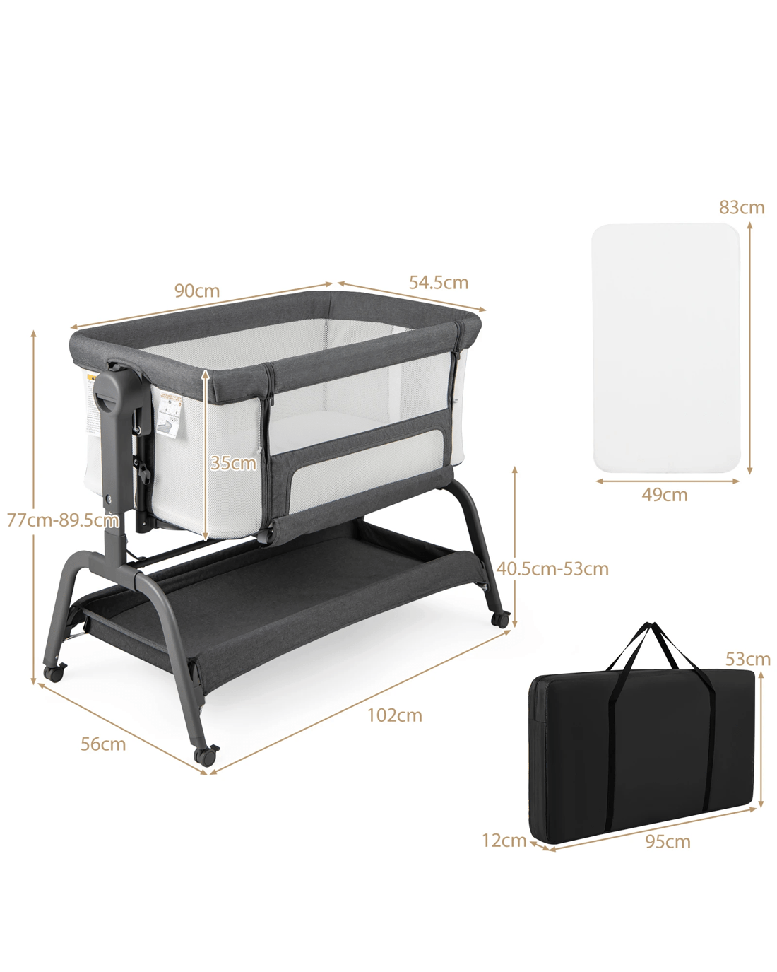 Crib Dimensions: 90 x 54.5 x 35 cm (L x W x H)