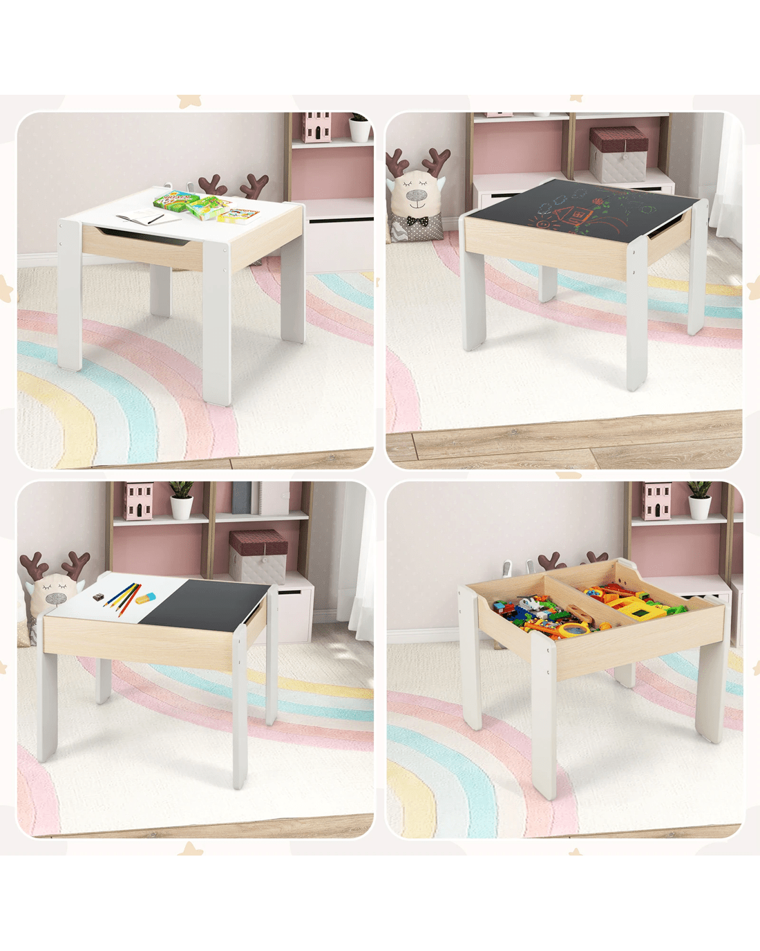 Sold by CostwayCostway 4-in-1 Kids Table Chair Set Wooden Activity Desk - White