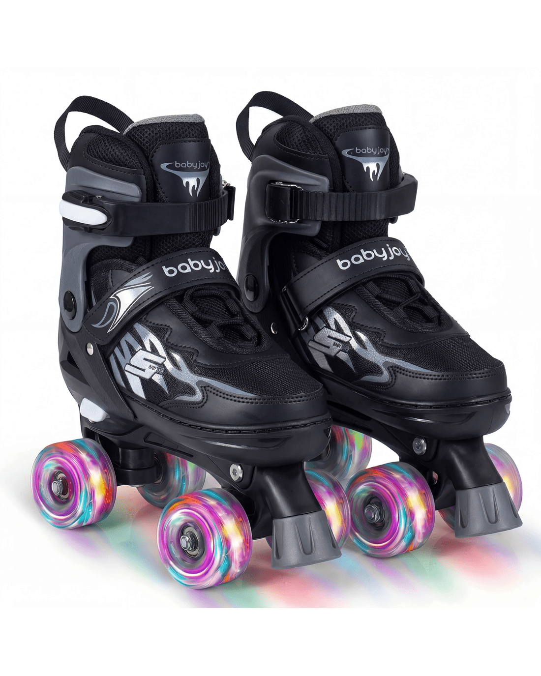 Crafted with breathable mesh fabric and a cozy interior, these roller skates provide lasting comfort and airflow for extended play. The smooth-gliding PU wheels and precision ABEC-7 bearings help young skaters maintain balance and control. A convenient push-button size adjustment allows the skates to grow alongside your little one, ensuring a secure fit through different stages. For added peace of mind, the reliable buckles, hook and loop fasteners, and upgraded brake system work together to enhance security. Finished with motion-activated light-up wheels and stylish accents, these roller skates turn every outing into a fun and memorable experience.