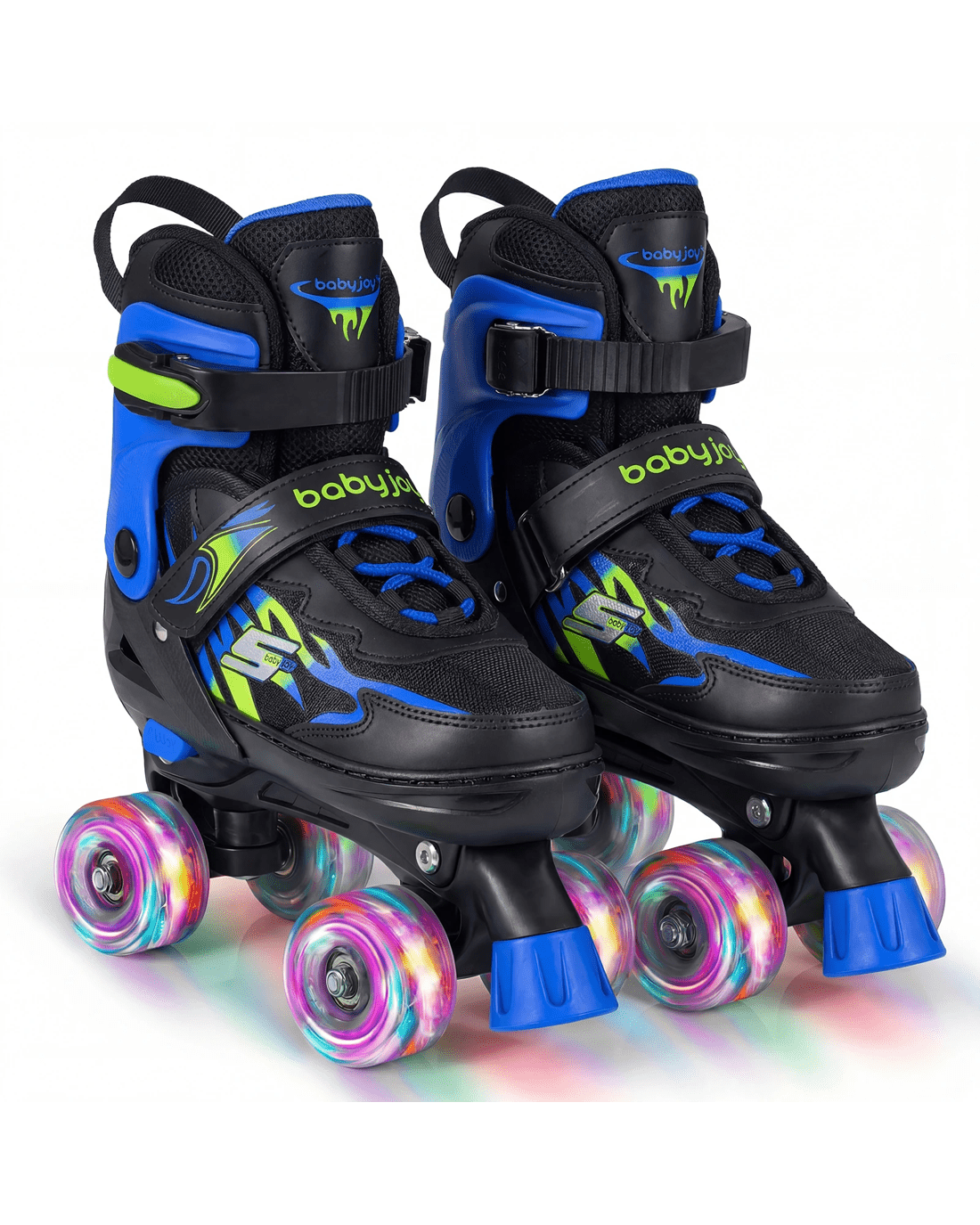 Crafted with breathable mesh fabric and a cozy interior, these roller skates provide lasting comfort and airflow for extended play. The smooth-gliding PU wheels and precision ABEC-7 bearings help young skaters maintain balance and control. A convenient push-button size adjustment allows the skates to grow alongside your little one, ensuring a secure fit through different stages. For added peace of mind, the reliable buckles, hook and loop fasteners, and upgraded brake system work together to enhance security. Finished with motion-activated light-up wheels and stylish accents, these roller skates turn every outing into a fun and memorable experience.