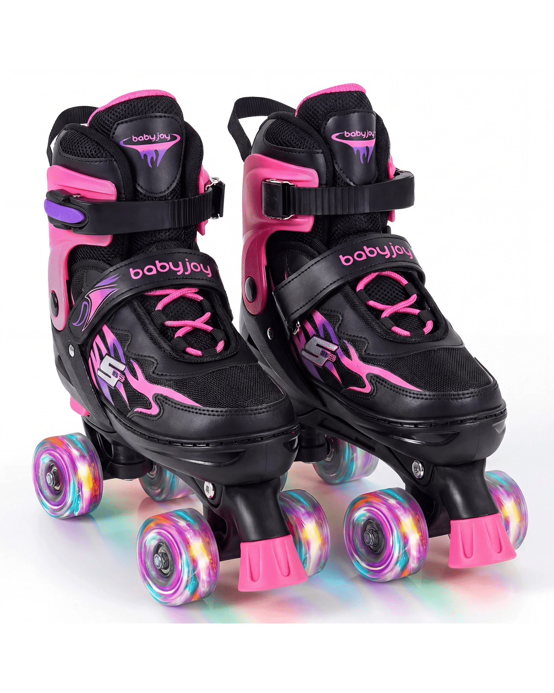 Crafted with breathable mesh fabric and a cozy interior, these roller skates provide lasting comfort and airflow for extended play. The smooth-gliding PU wheels and precision ABEC-7 bearings help young skaters maintain balance and control. A convenient push-button size adjustment allows the skates to grow alongside your little one, ensuring a secure fit through different stages. For added peace of mind, the reliable buckles, hook and loop fasteners, and upgraded brake system work together to enhance security. Finished with motion-activated light-up wheels and stylish accents, these rollerskates turn every outing into a fun and memorable experience.