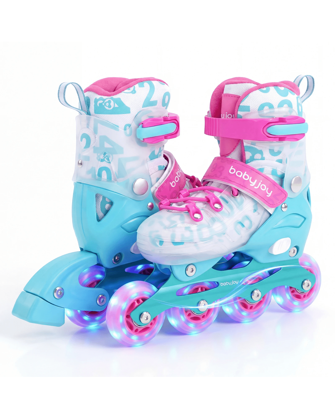 Built with breathable materials and cushioned comfort, these inline skates support long-lasting wear. The combination of shock-absorbing PU wheels and precision ABEC-7 bearings ensures a smooth ride that helps young skaters maintain balance. A one-push size adjustment system allows the skates to adapt as little ones grow, extending their usability. For added security, the reinforced shell structure, secure fastening system and dependable brake work together to enhance stability. Finished with 8 light-up wheels and eye-catching pattern details, these inline skates transform every outing into a fun and memorable skating experience.