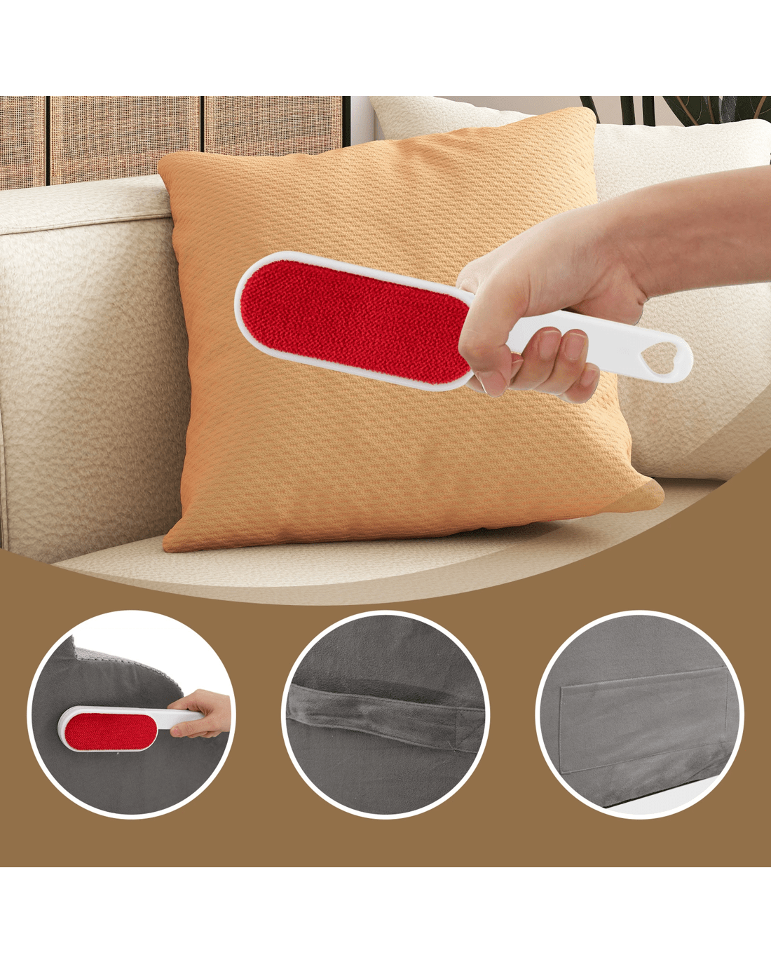 The double-sided pet hair remover brush keep your clothes and furniture fur-free