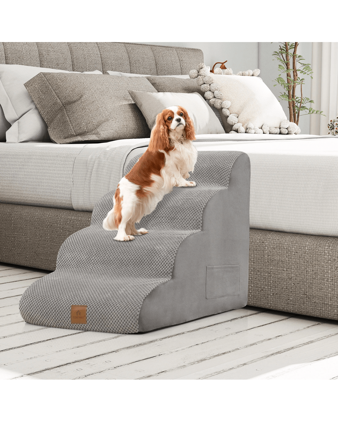 Costway 4-Step Dog Ramp Foam Pet Stair w/Storage Pocket & Handle - Grey