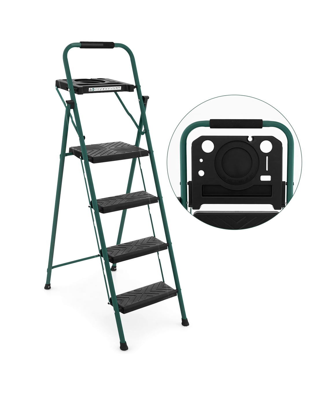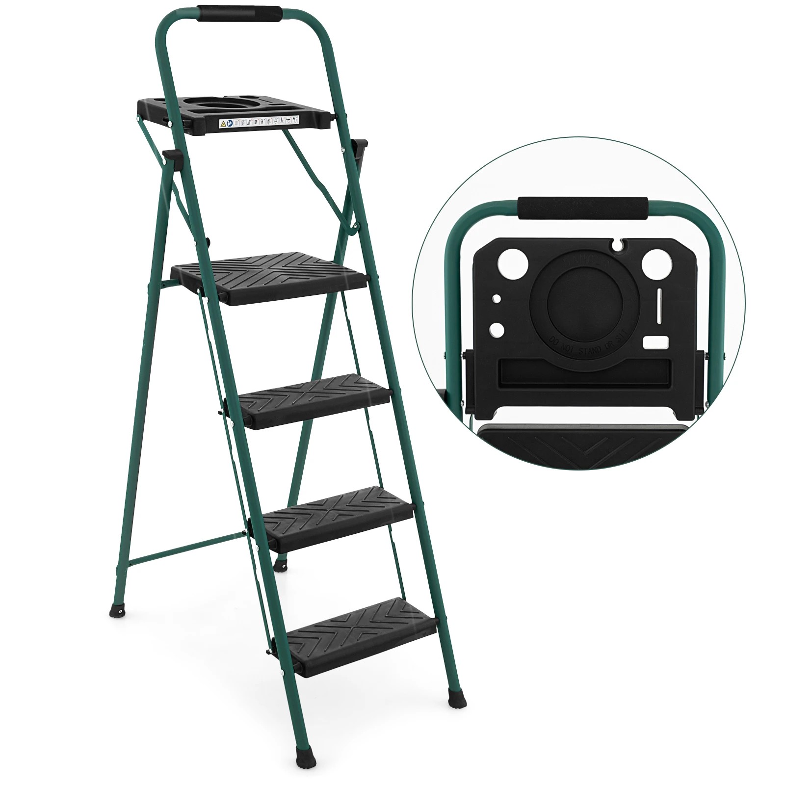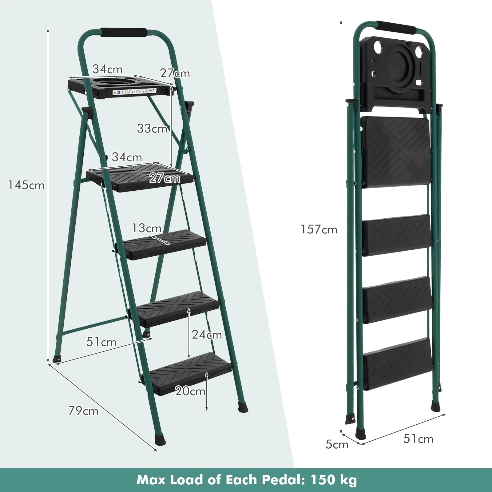 Costway 4-Steps Folding Ladder w/Tool Platform Portable Step Stool