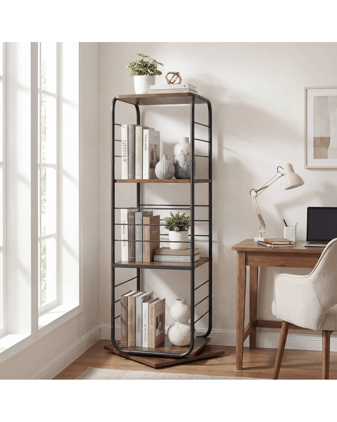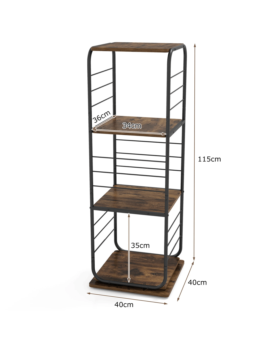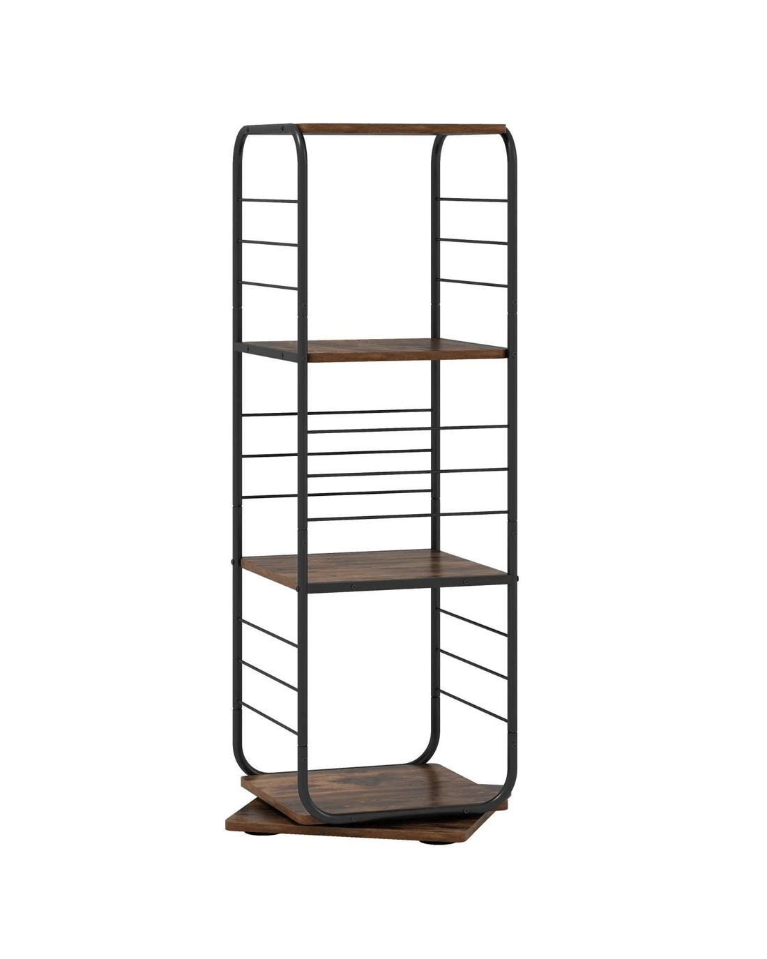 Costway 4-Tier Swivel Bookshelf Bookcase Metal Frame Corner Storage Home Office Display Rack - Brown
