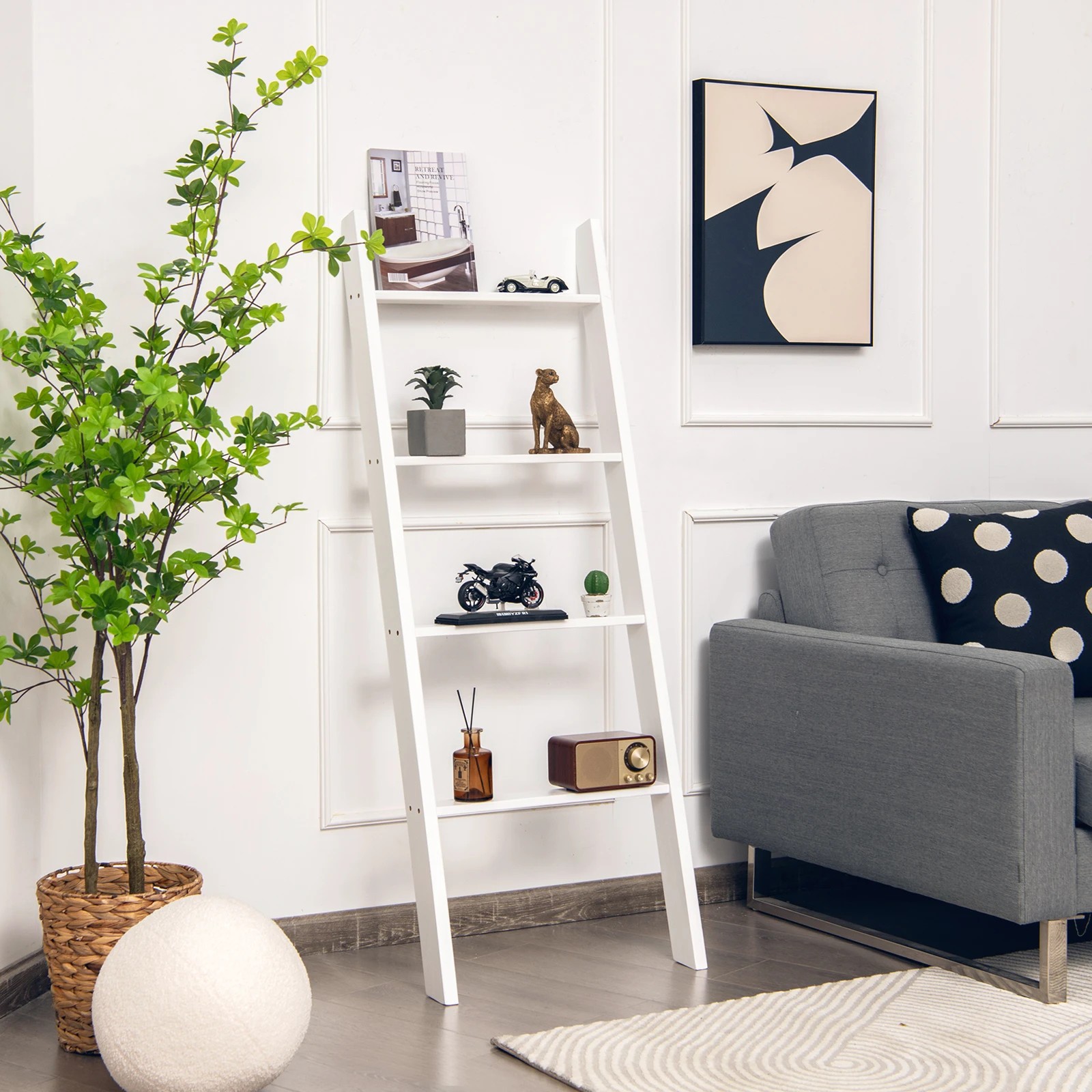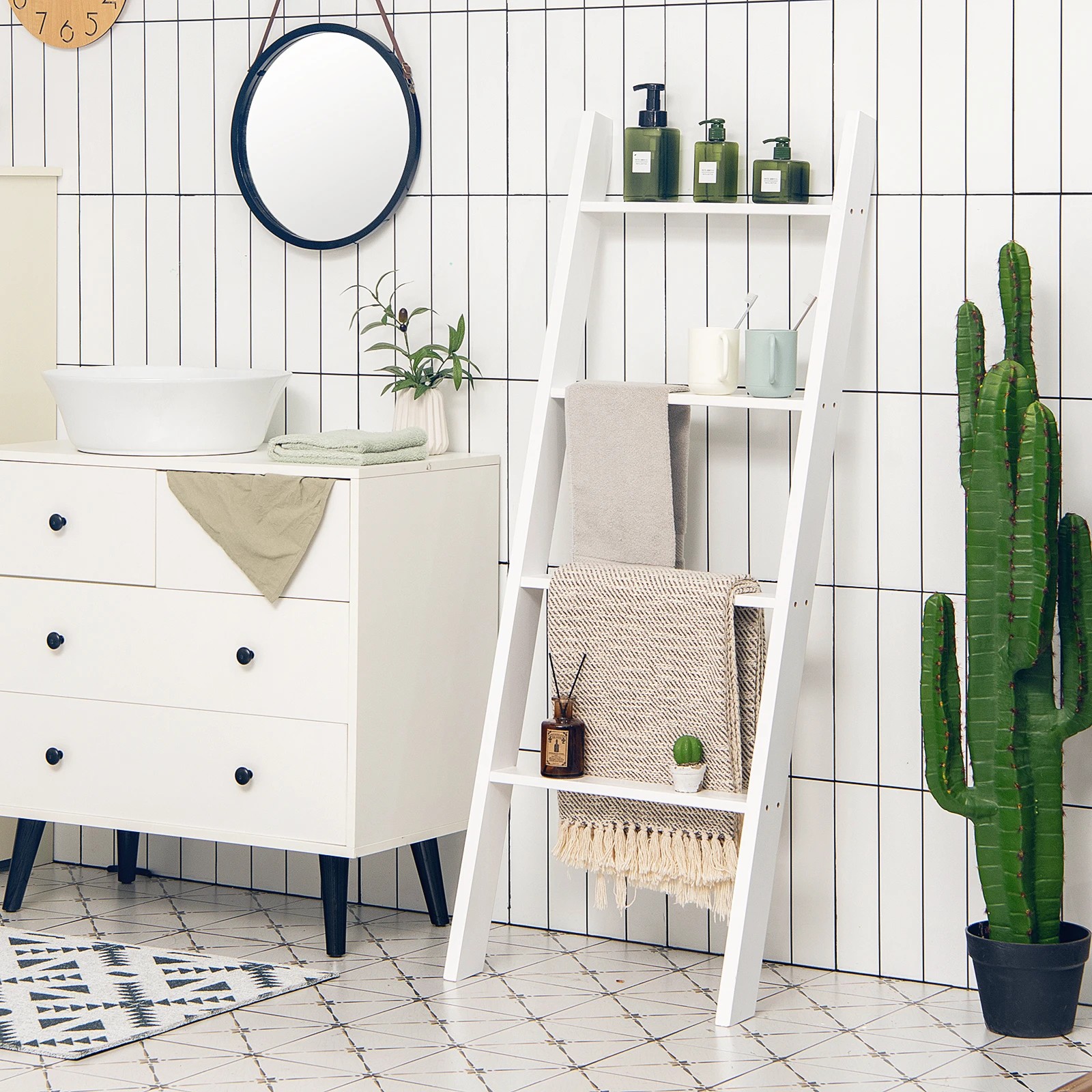 Costway 4-Tier Wall Leaning Blanket Ladder Wood Blankets Holder Rack