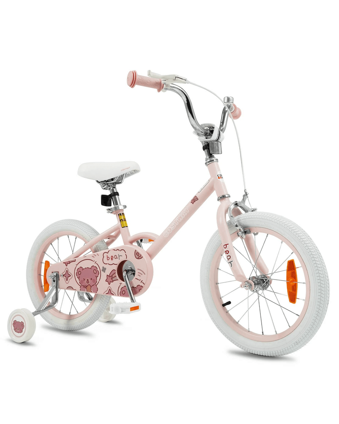 Get your little one ready for exciting outdoor adventures with our 40cm little ones bicycle! Specially crafted for young riders, this stylish bike combines fun and function, making every trip memorable. Adjustable height makes it ideal for 4-7 years old little ones. The fully enclosed chain guard protects little one's feet. Front and rear reflectors make little one visible in low-light conditions, keeping them safer during dusk rides or cloudy days. The bike bell adds extra fun to each journey. Additionally, with 2 detachable training wheels, the little ones bike is perfect for little one learning to ride. The high-quality tires ensure a safe and steady riding experience on flat surfaces.