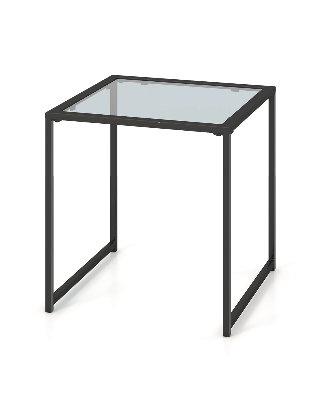 Costway 43CM Square Side Table Tempered Glass Coffee Bistro Table Metal Frame - Black