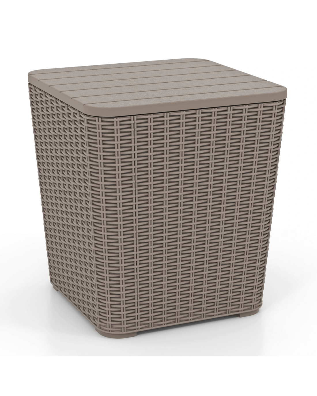 Costway 43L Patio Storage Box Resin Patio Side Table w/Removable Lid - Brown