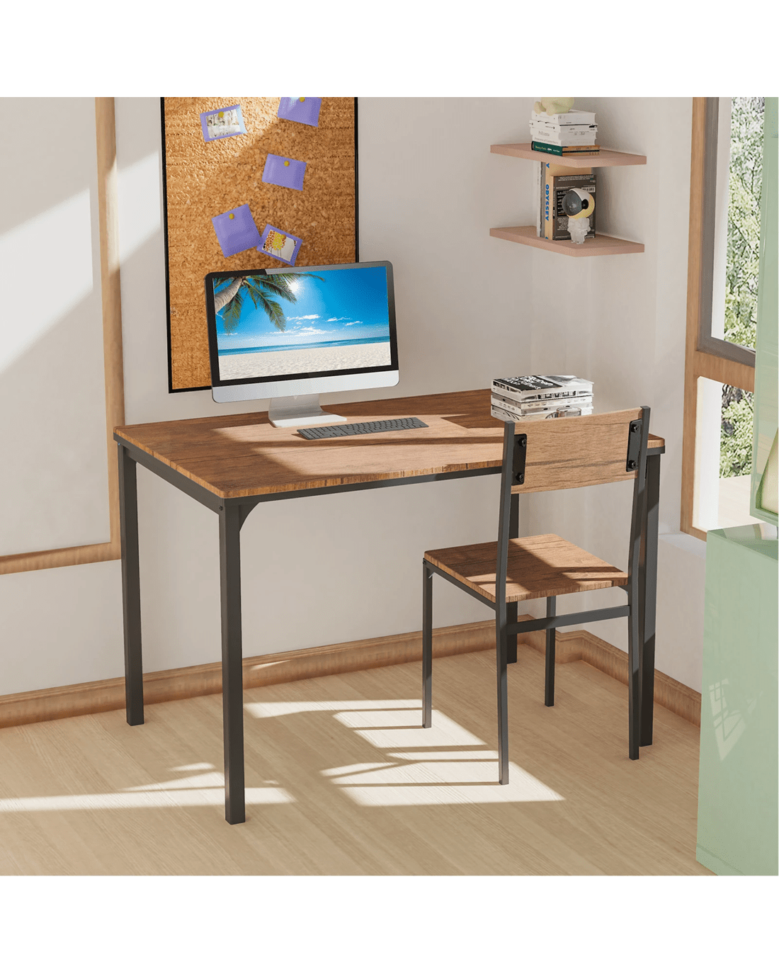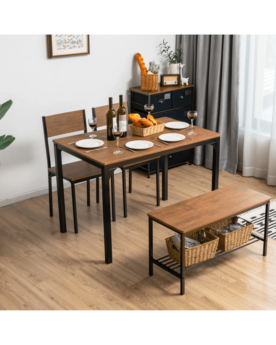 Our 4-piece modern dining table set is an ideal addition to your home for family gathering and friend get-together. Comes with a spacious table, a large bench and 2 ergonomic chairs, this kitchen dining set allows 4 persons to sit together. Comes with durable MDF and sturdy metal frame, this table set ensures high stability and long-term use. Its industrial style can match with different indoor decorations. Also, this modern set can be used as a working desk in the study room and a dresser in the bedroom, which can meet all your needs. Besides, the chairs and bench can be tucked under the table, which is ideal for limited living space to use. In a word, this dining table set provides you with both practicality and attractiveness.