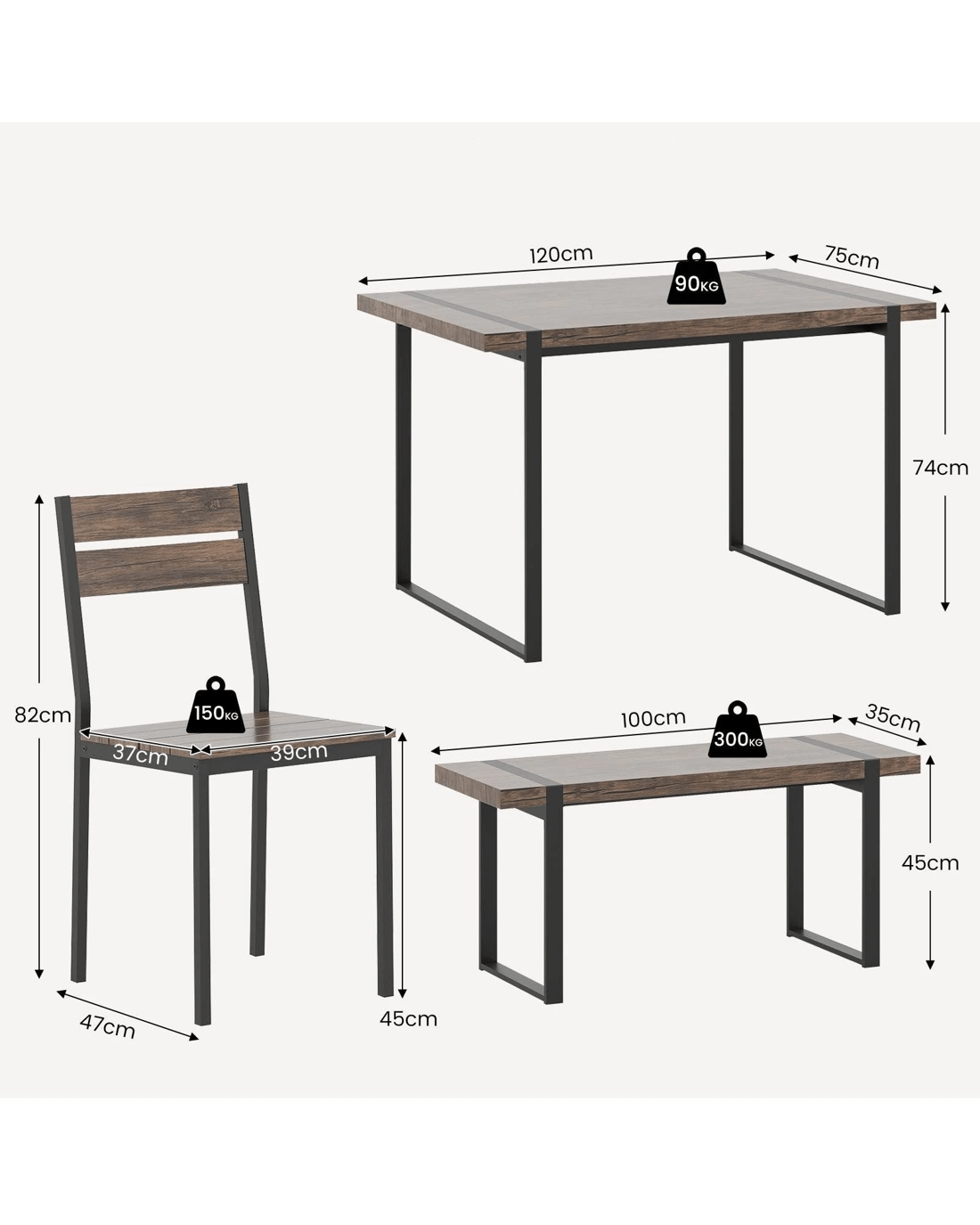 Bench Size: 100 x 35 x 45 cm (L x W x H)