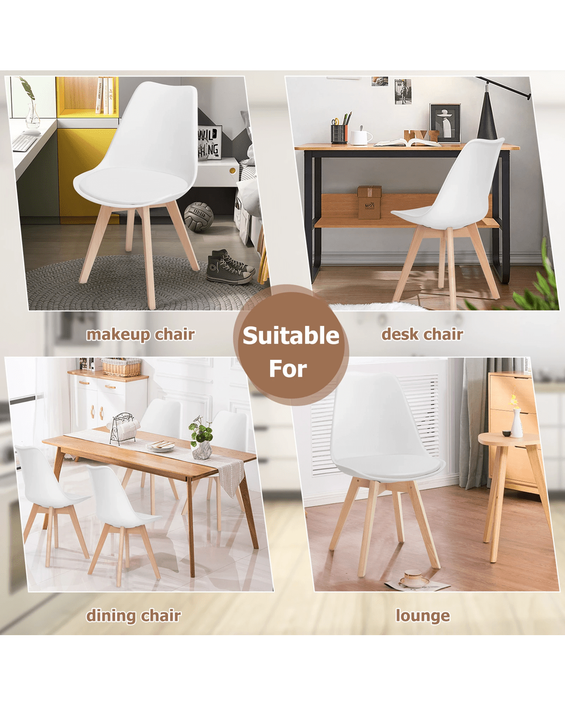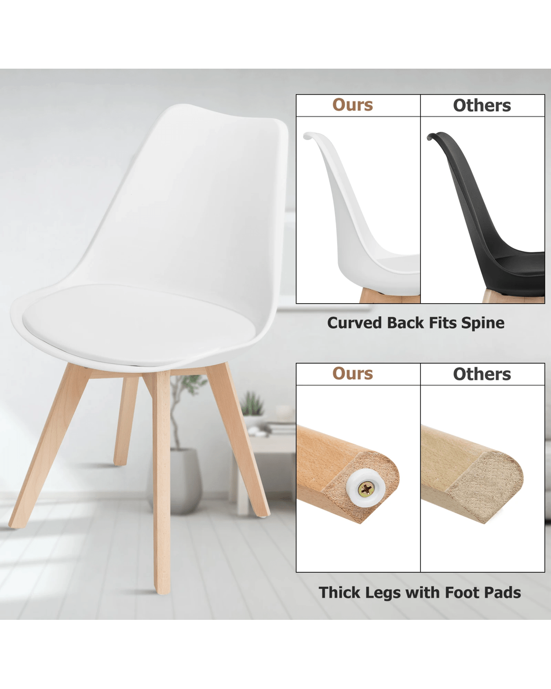 Equipped with thick cushion and curved high backrest, the chair provides you with a cozy place to take a break and release your fatigue. Made of premium PU leather and selected beech wood, the chair has great durability, stability and load capacity. At the bottom of legs, match with the noise-proof foot pads to protect the floor. Armless design provides ample space for your different sitting positions. Moreover, our 4 dining chairs with mid-century appearance and elegant lines add attractiveness to your house. You can place them in the kitchen or living room to have a small gathering.