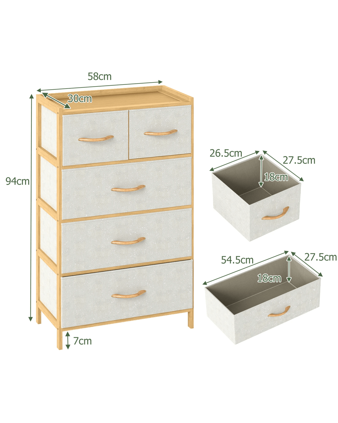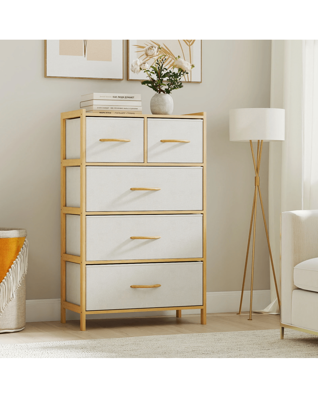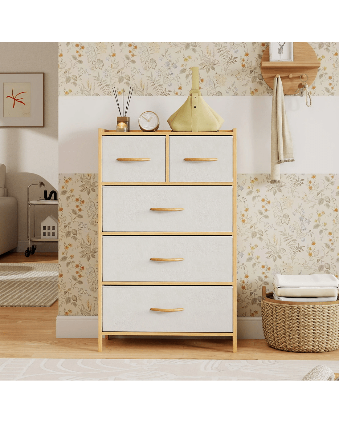 Costway 5 Chest of Drawers Bamboo Dresser Table Tallboy Storage Tower Cabinet