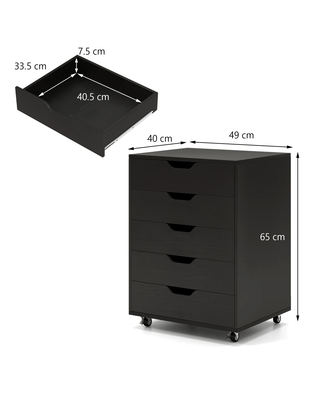 Costway 5-Drawer Mobile File Cabinet Storage File Pedestal Home Office - Black
