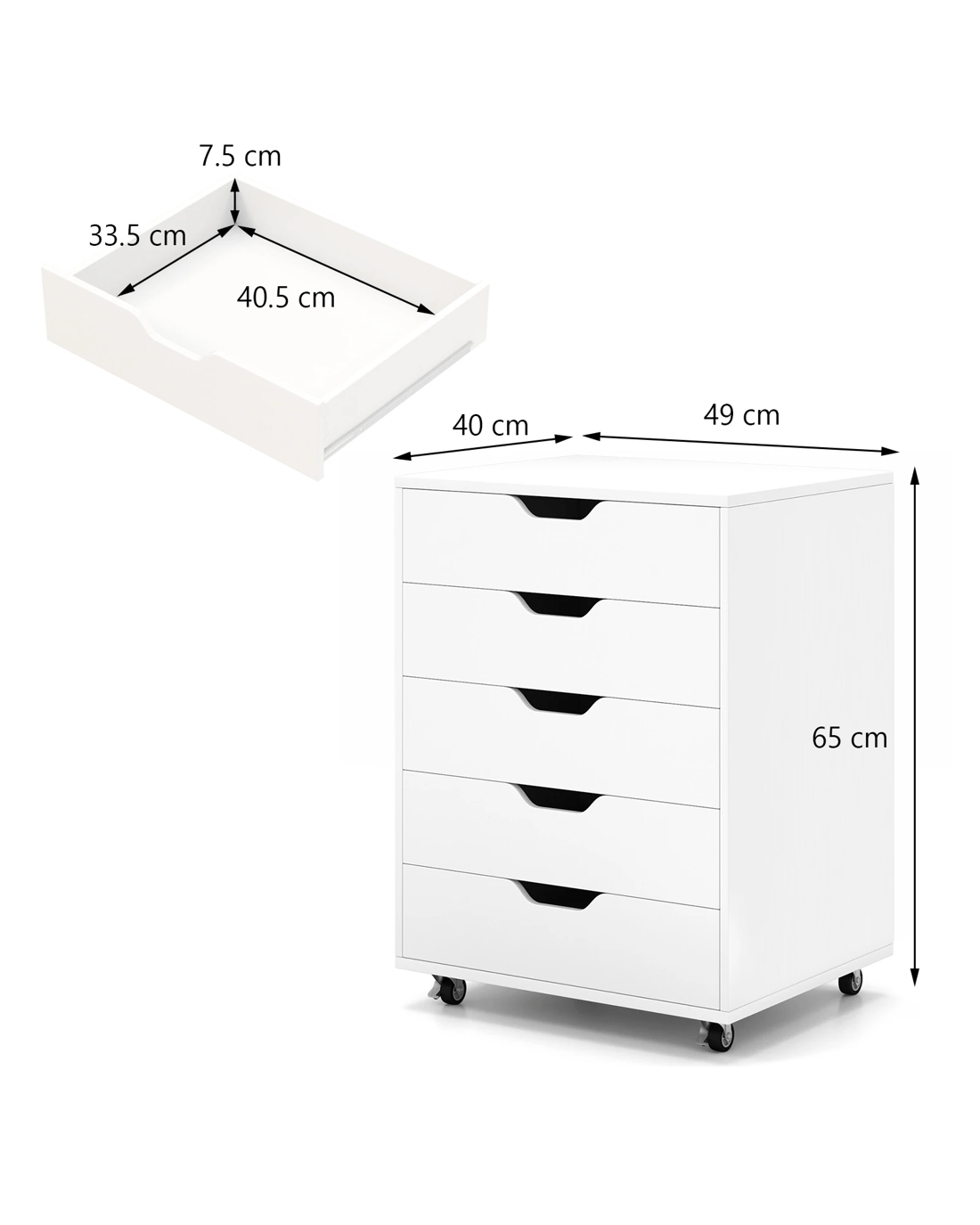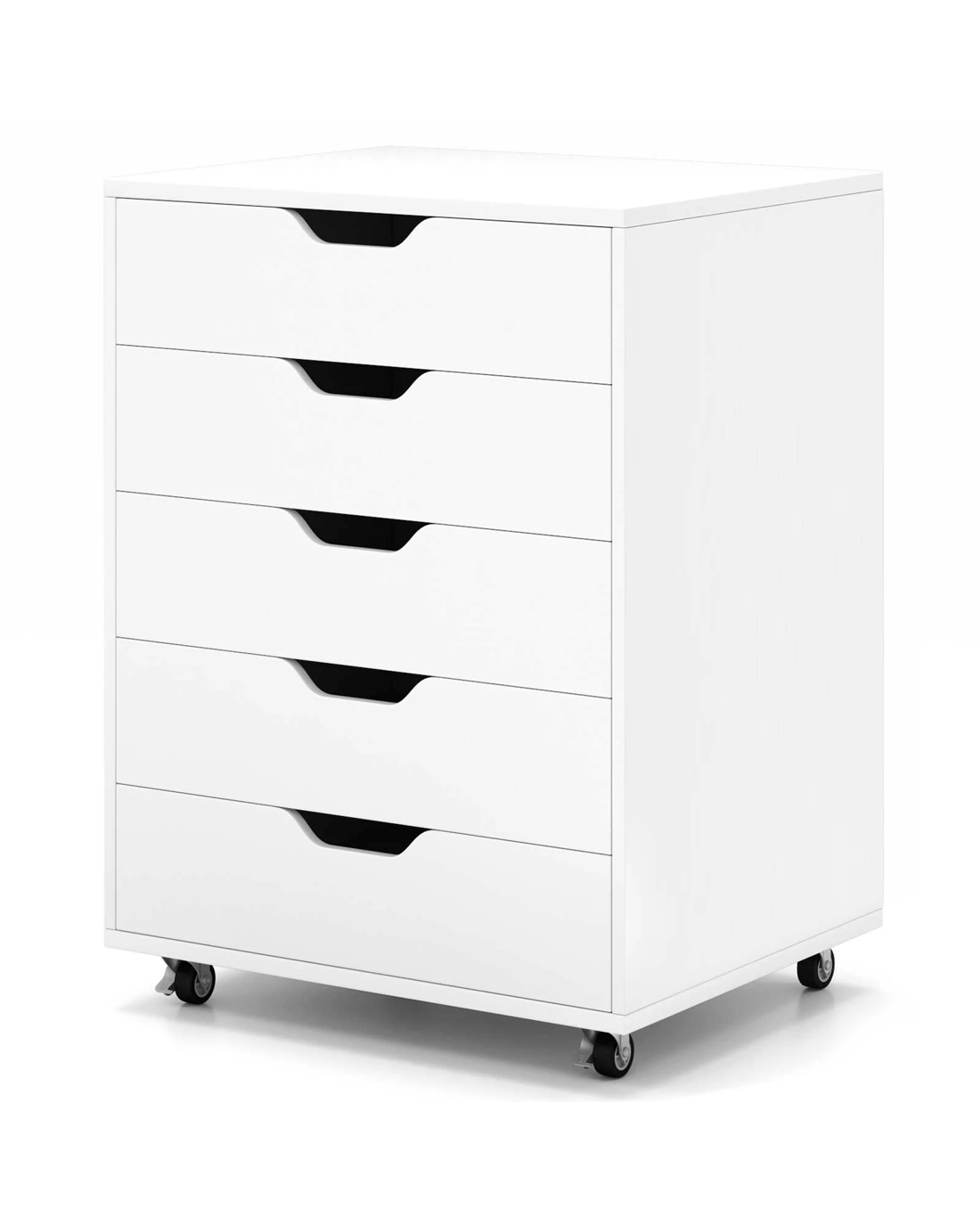 Costway 5 Drawer Mobile File Cabinet Rolling Storage Drawer Chest - White