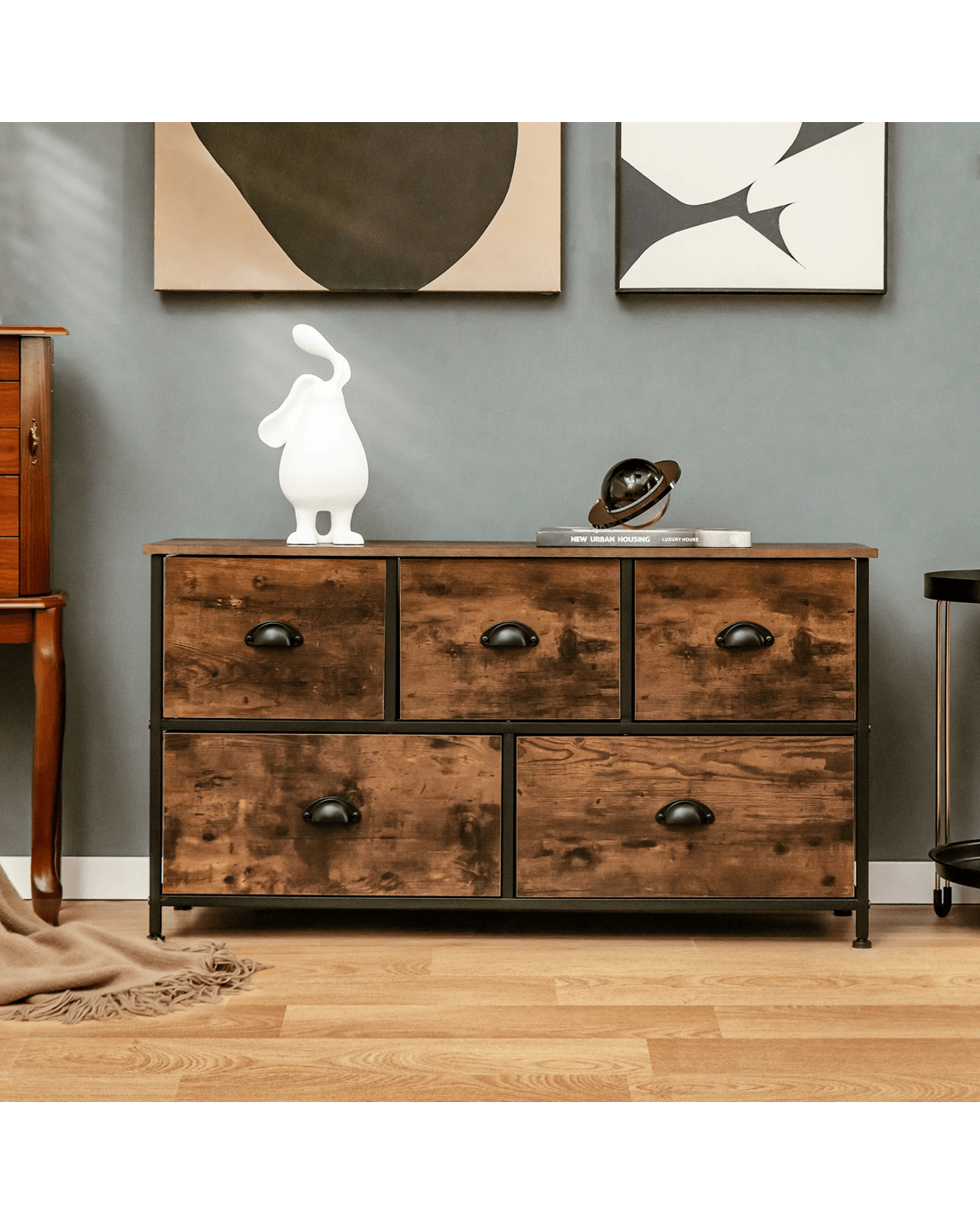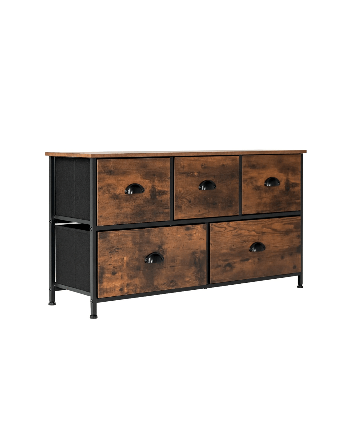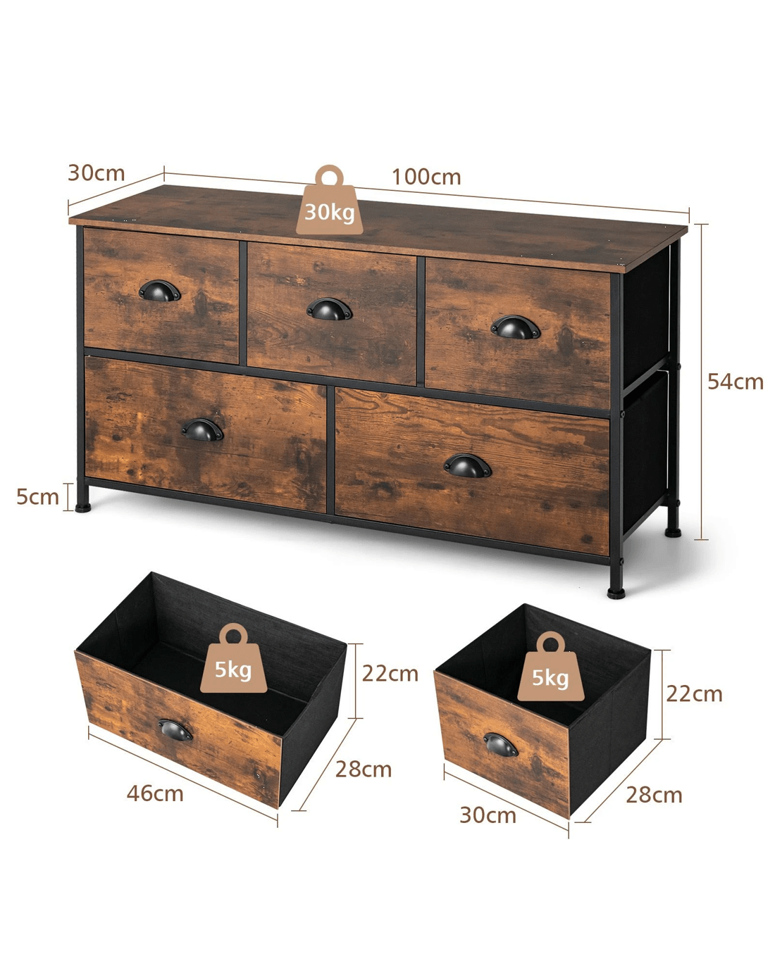 Costway 5 Fabric Drawers Tallboys Chest of Drawers Dresser Storage Cabinet - Brown