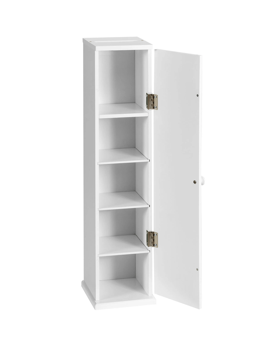 Top slot and hinged door make it easy to use. Besides, 3 unfixed shelves enable you to freely arrange storage space according to your needs. Space-saving design creates a small floor footprint. Apart from that, made of sturdy MDF, the tissue cabinet is stable and durable. The cabinet with modern and simple appearance is suitable for any room in your house. In addition, smooth surface simplifies the cleaning process. With the help of our detailed instruction, you can assemble it quickly in a few steps.