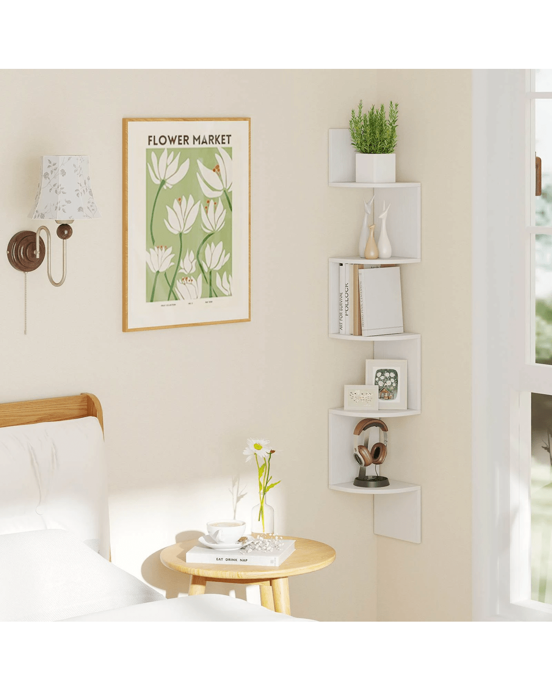 Transform any corner into a stylish storage solution with the innovative floating corner shelf. Featuring a 5-tier design, this display stand provides ample storage space. Moreover, the wall storage organizer comes with 6 wall mounting kits to perfectly maximize your vertical space. With a sturdy construction that can support up to 35kg, security and stability are well ensured. Its stylish design, complete with smooth rounded edges and concealed screw hole covers, adds a sophisticated touch to any room. Whether used in living rooms, bedrooms, kitchens, or beyond, this versatile shelf is a perfect blend of functionality and aesthetics, making it a versatile addition to your home decorations.
