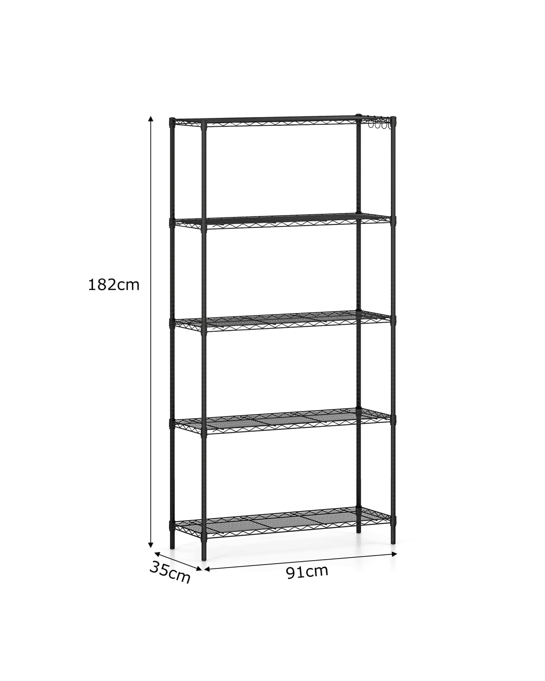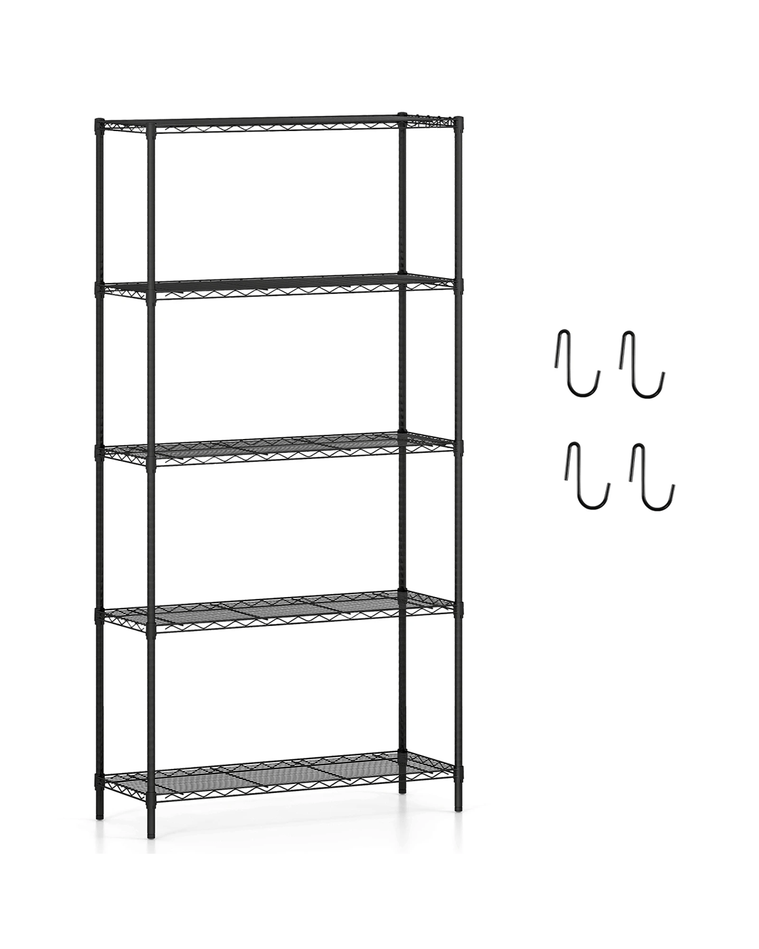 Sold by CostwayCostway 5-Tier Wire Shelving Unit Adjustable Heavy-Duty Metal Storage Shelves w/4 Hooks