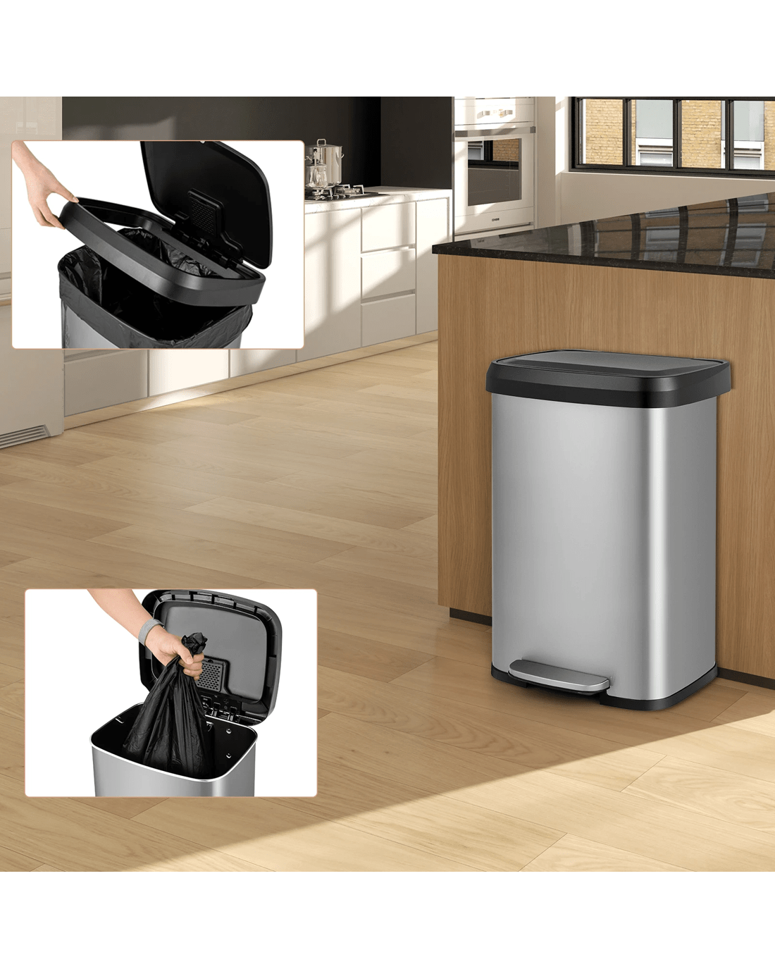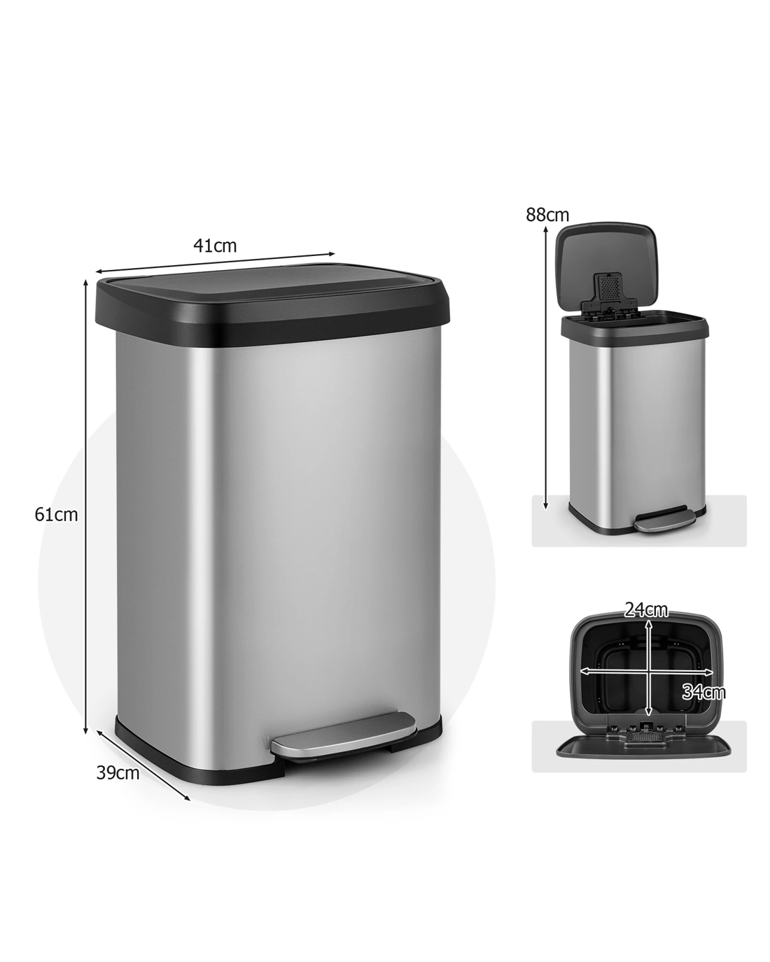 Costway 50L Stainless Steel Trash Can Garbage Bin