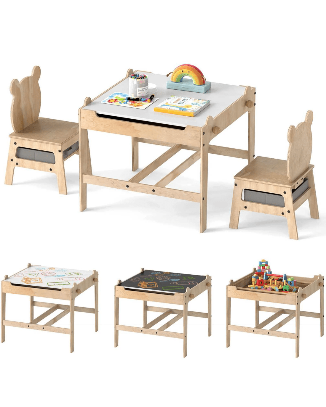 Costway 52cm Table Chairs Set 4 in 1 Activity Table