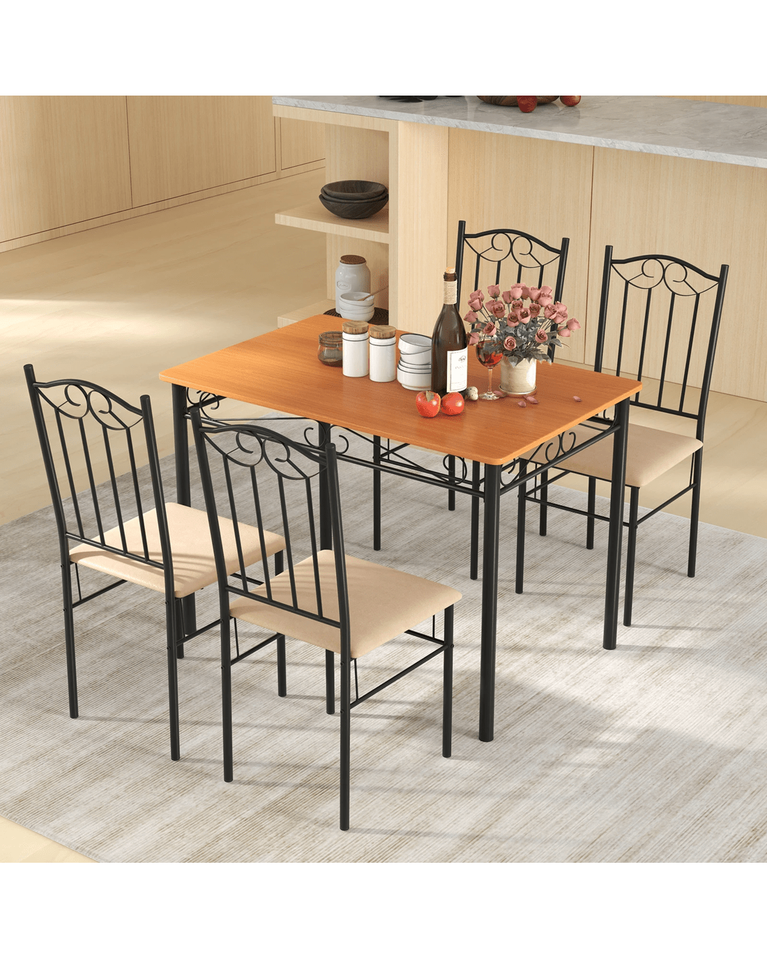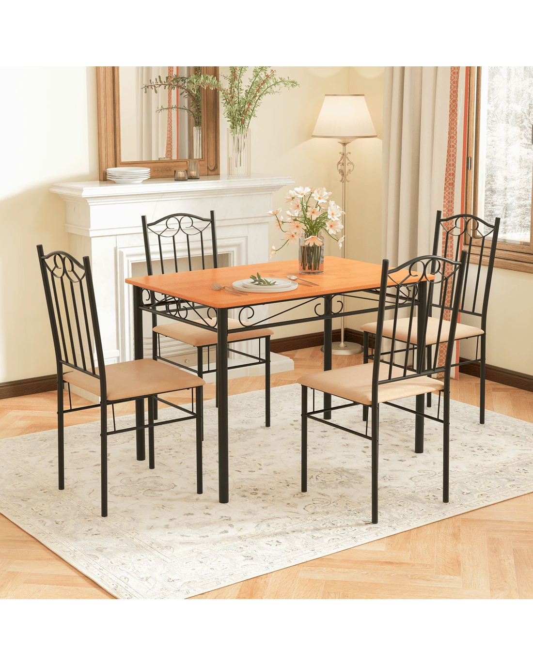 The package includes a dining table & 4 dining chairs, which can accommodate 4 people at the same time. As for stability, the dining table set is supported by metal tubes, which are reinforced & rustproof. Plus, each dining chair comes with a padded seat that is made of velvet & sponge. Thanks to anti-slip foot pads, the kitchen table set can be safely placed in the dining room, living room, breakfast nook, etc. When not in use, just stow chairs under the table to save space.