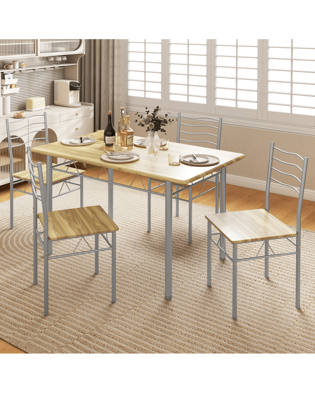 Sold by CostwayCostway 5PCS Modern Dining Table Set Wood Rectangular Kitchen Table & 4 Chairs - Brown