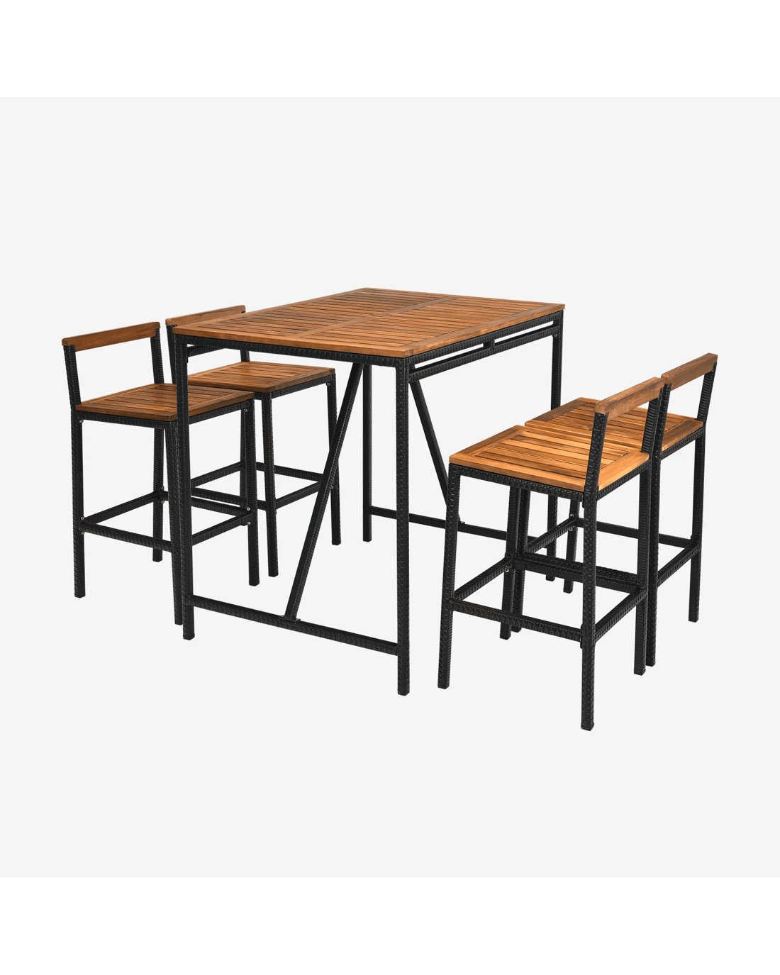 Costway 5PCS Outdoor PE Rattan Bar Set Counter Height Dining Table w/Umbrella Hole - Brown