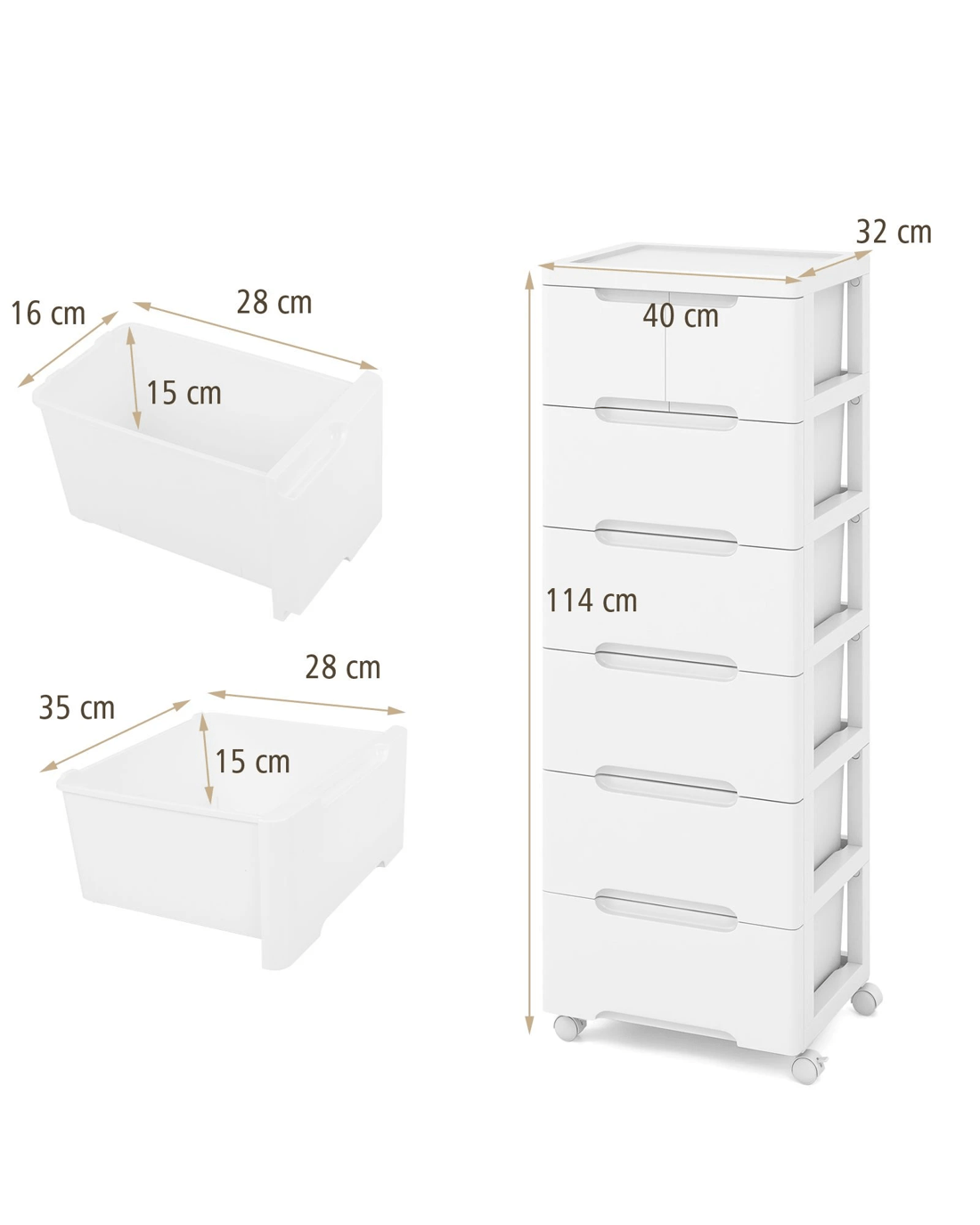 Costway 6 Chest of Drawers Mobile Home Office Storage Cabinet Filing Cabinet - White
