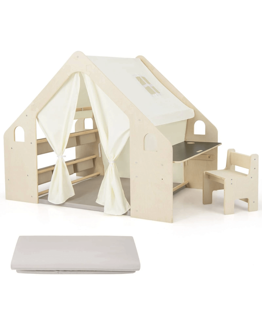 Costway 6-in-1 Playhouse Wooden Indoor Play Tent w/Blackboard