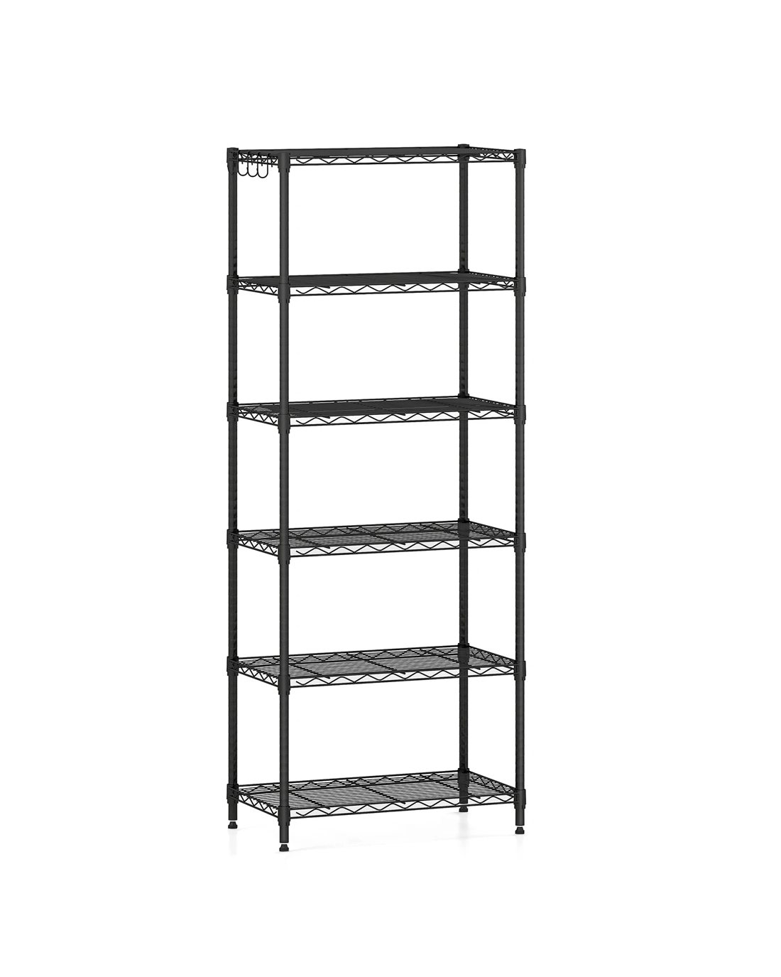 Costway 6-Tier Wire Shelving Unit Adjustable Heavy-Duty Metal Storage Shelves w/4 Hooks