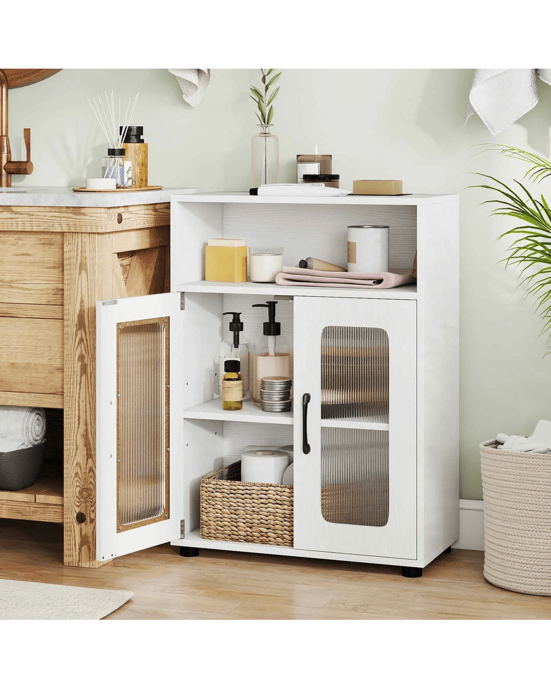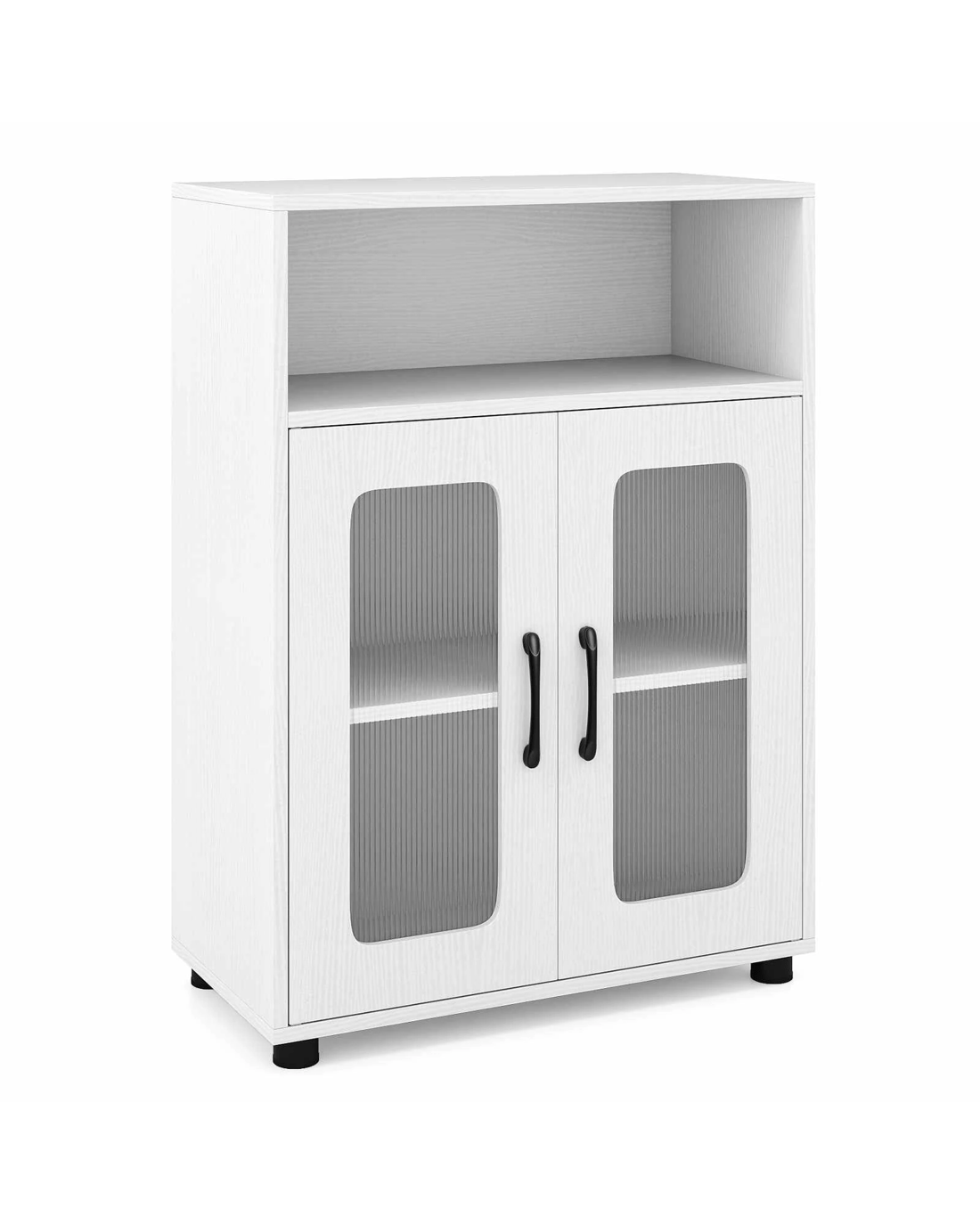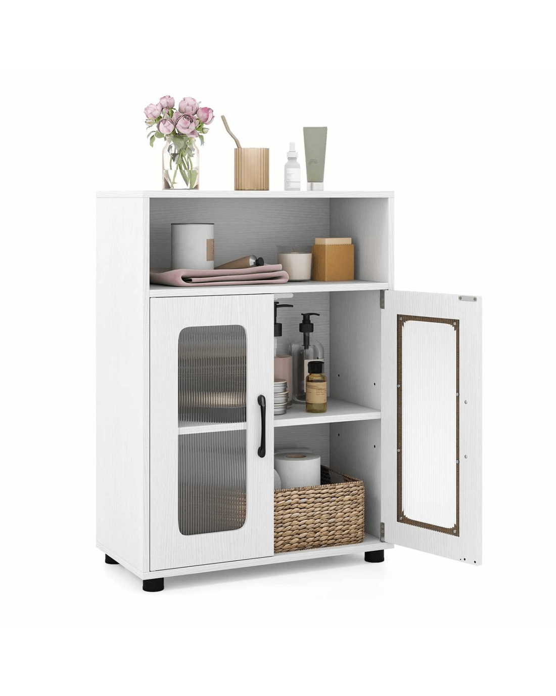 Costway 83cm Bathroom Storage Cabinet w/2 See-through Doors Freestanding Organizer Unit