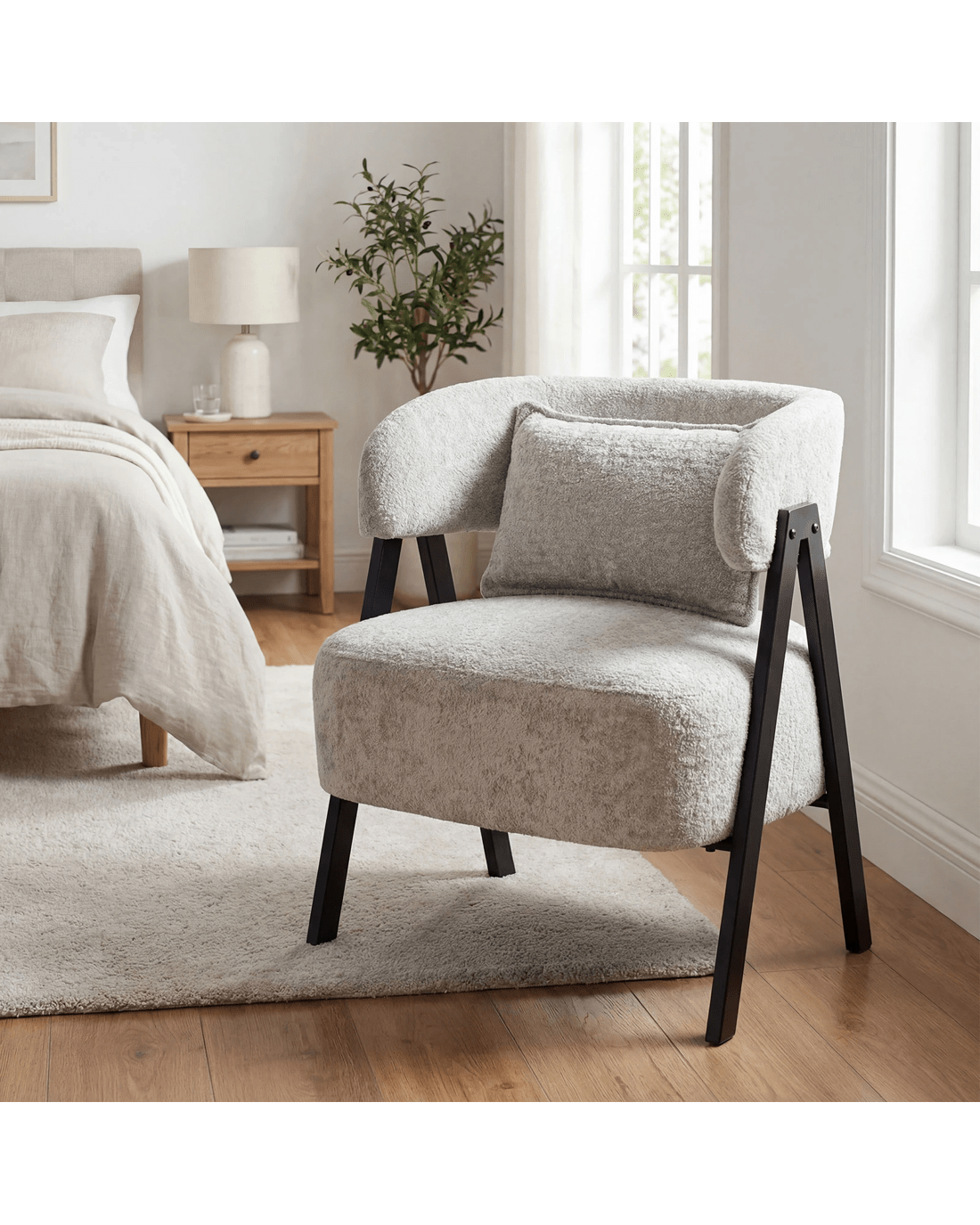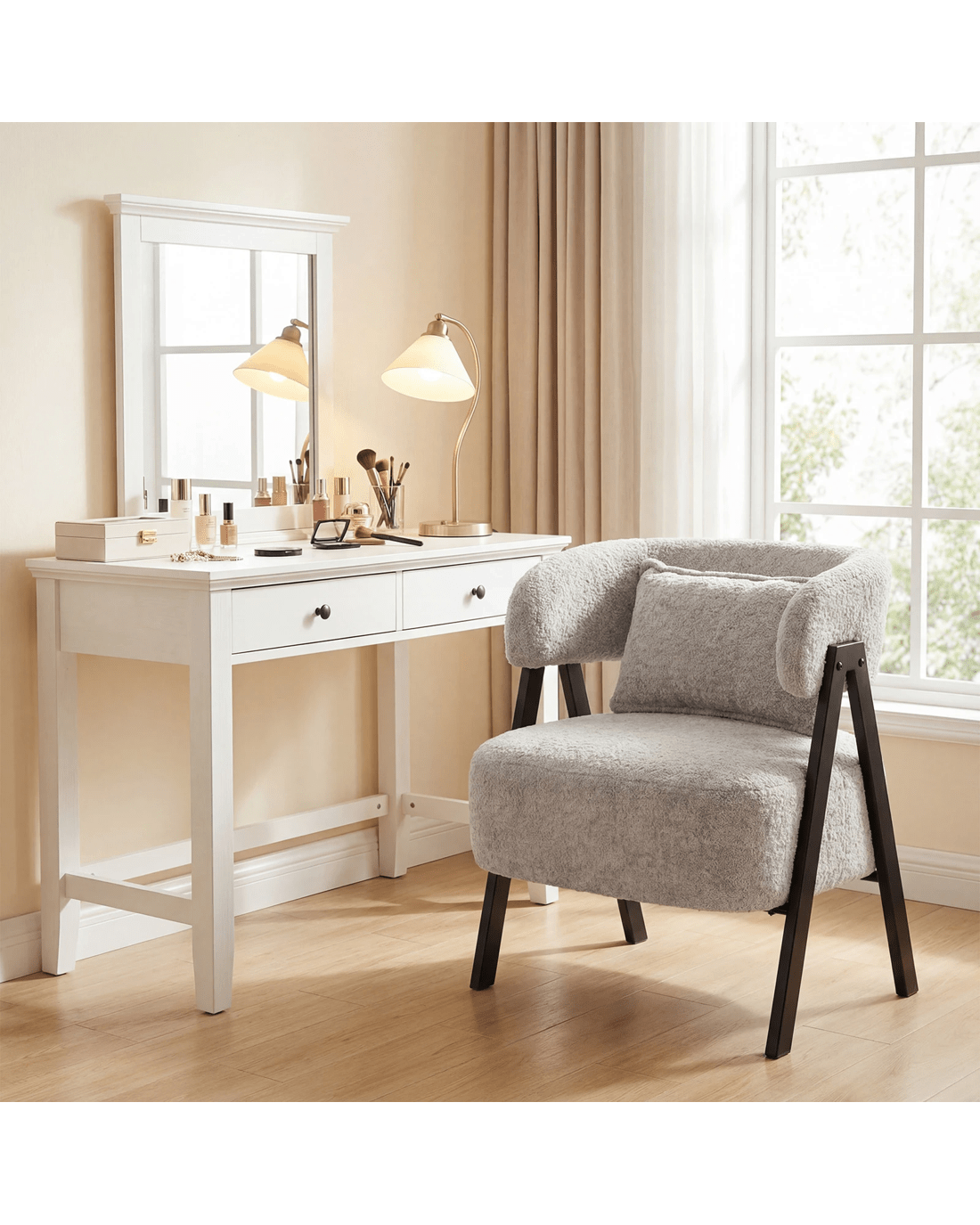 Costway Accent Chair Faux Rabbit Fur Armchair Upholstered Leisure Chair w/Lumbar Pillow Home Office