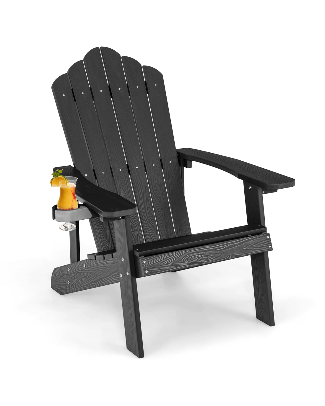 Sold by CostwayCostway Adirondack Chair Plastic Outdoor Beach Chair w/Cup Holder - Black