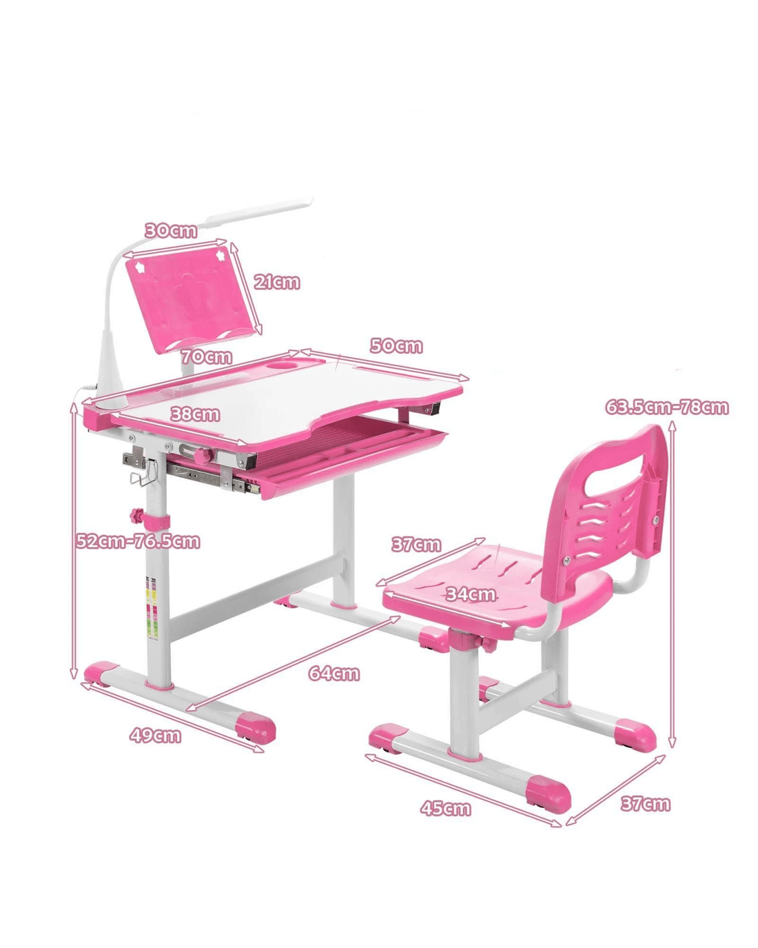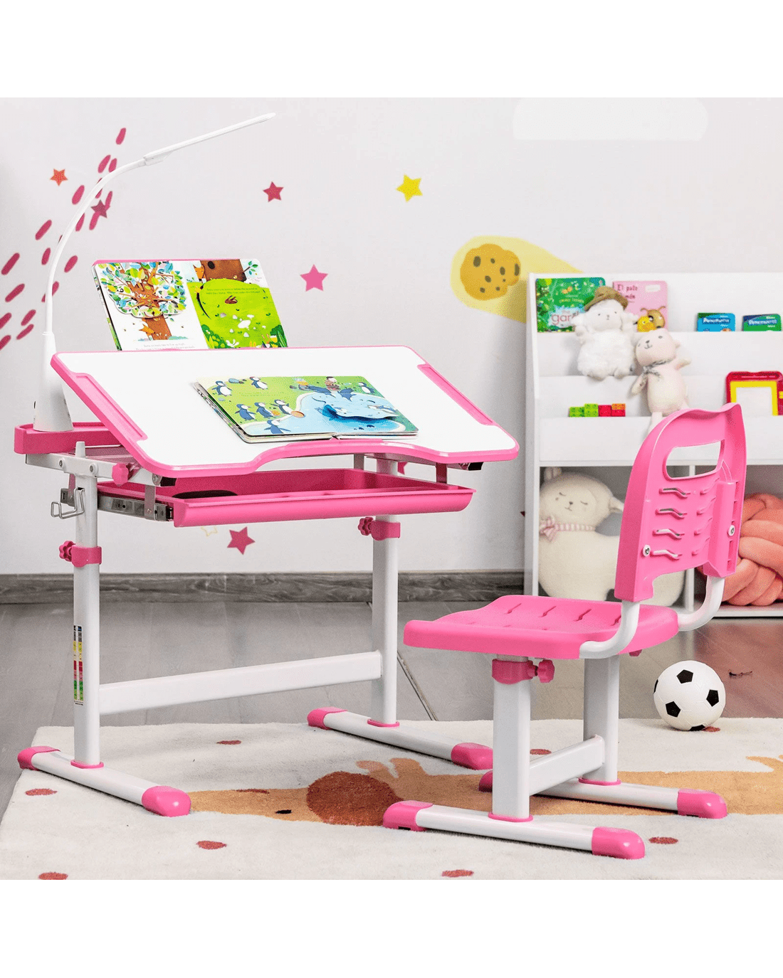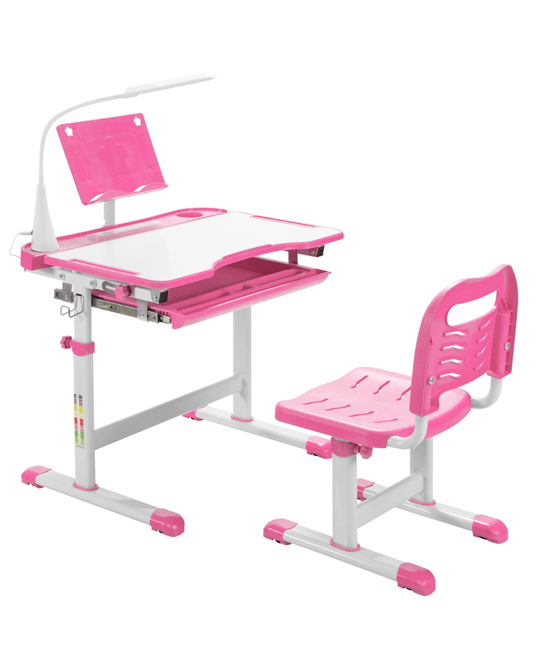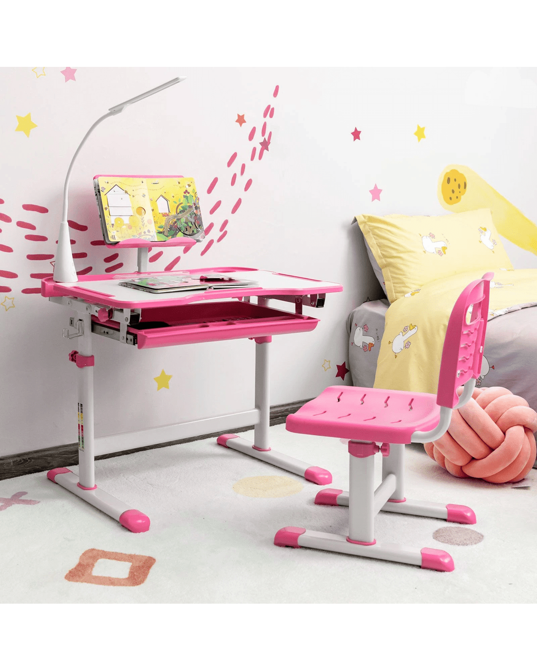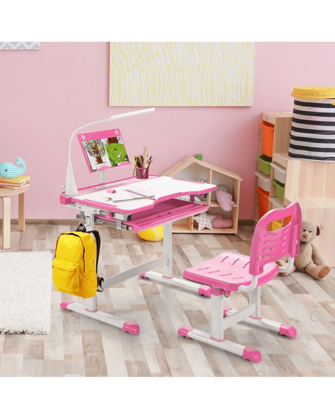 Costway Adjustable Study Desk & Chair Set w/LED Light Pink