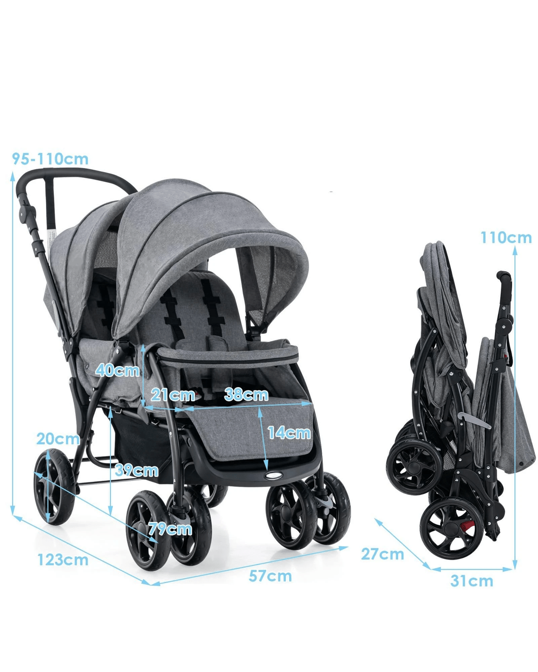 Sold by CostwayCostway Baby Stroller Twin Pram Travel Pushchair