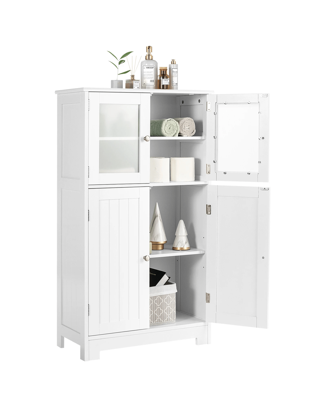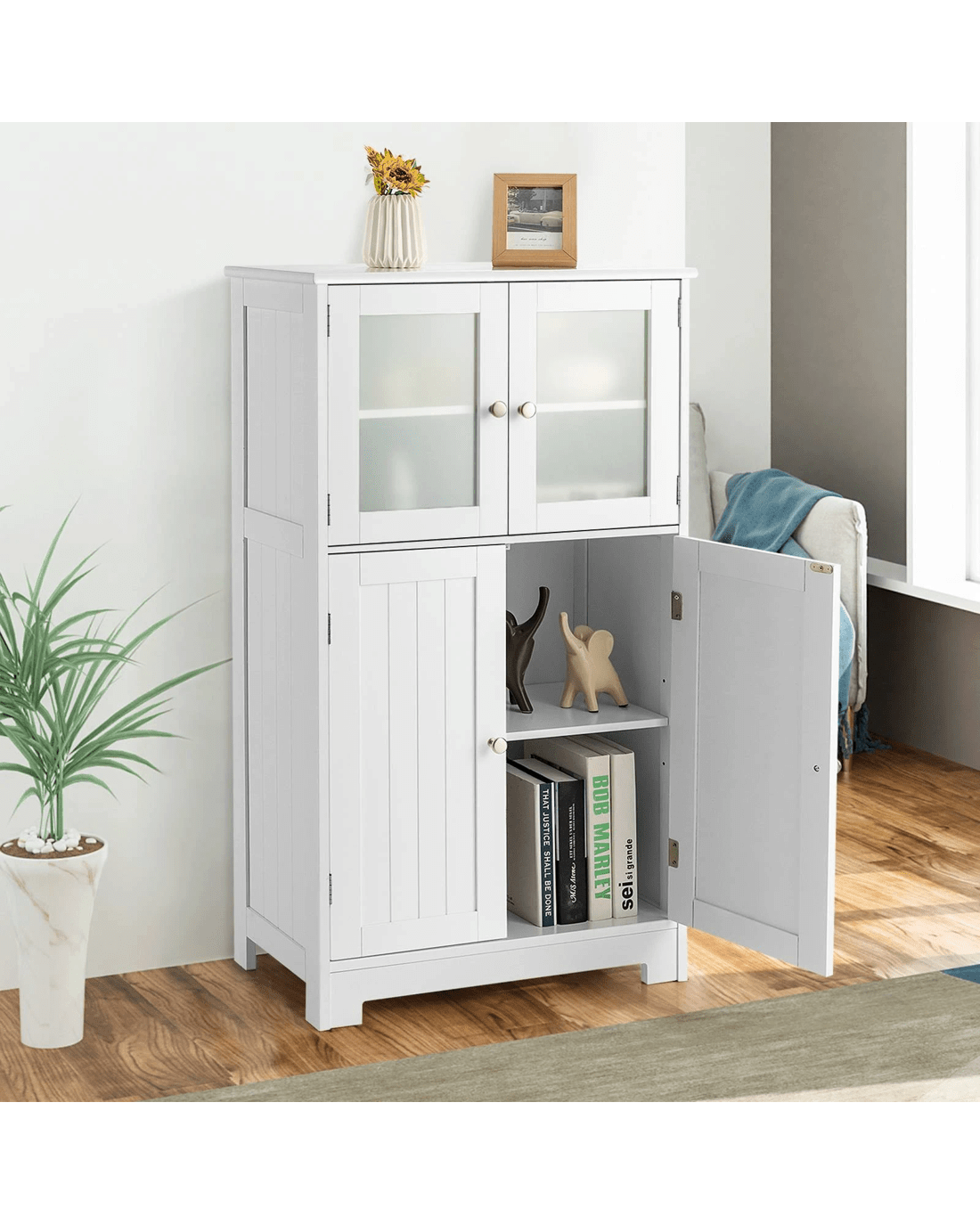 Costway Bathroom Cabinet Toilet Storage Cupboard Organizer w/Shelf & 4 Doors - White