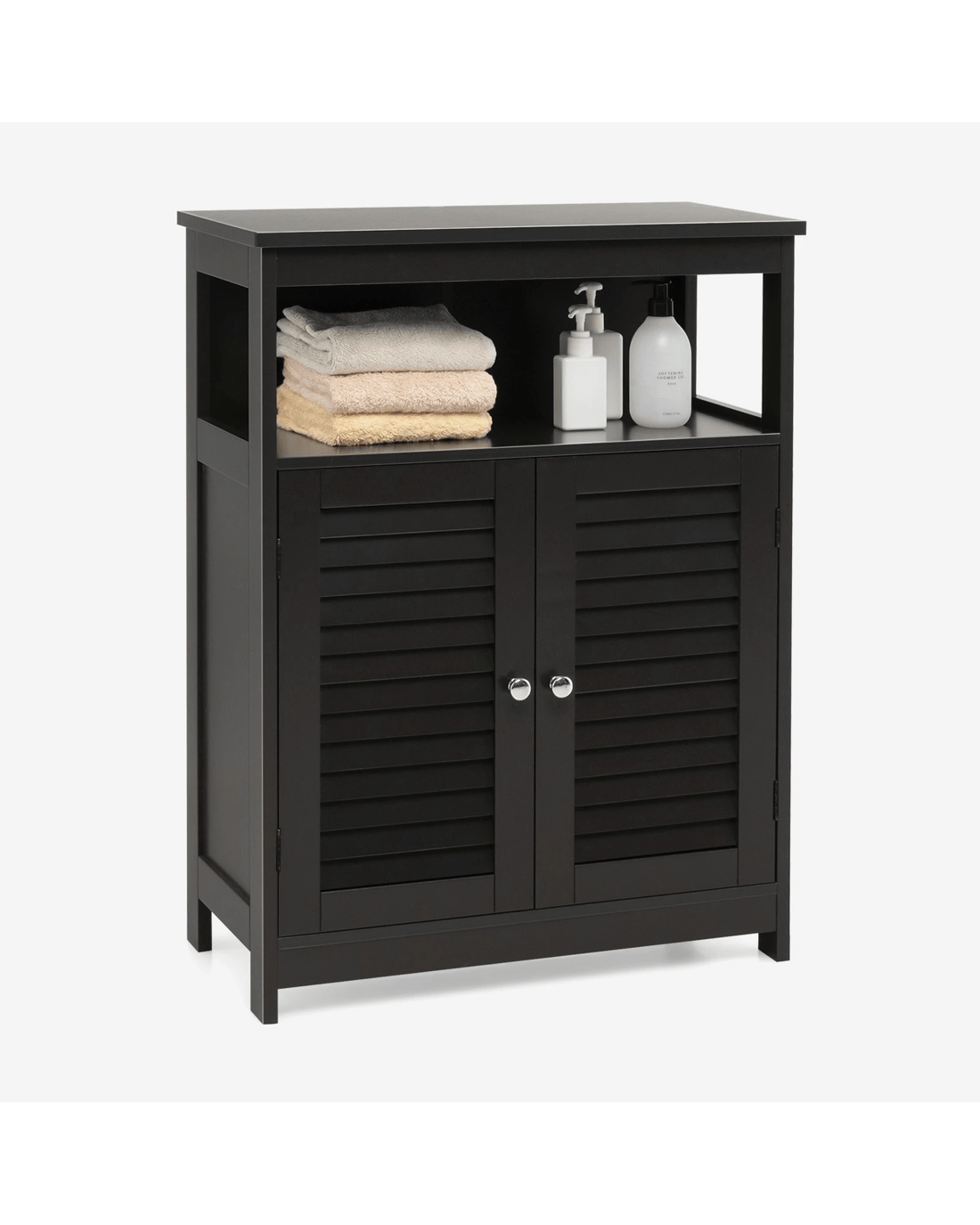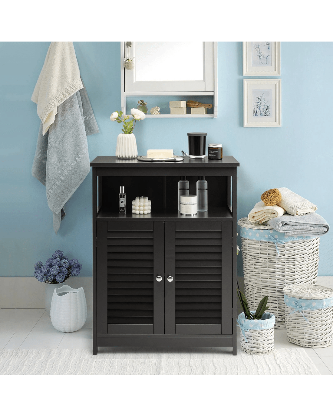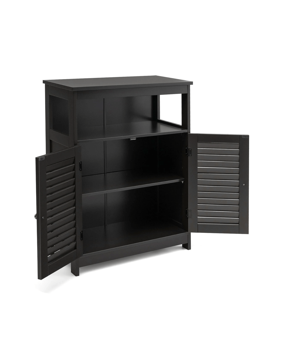 Costway Bathroom Storage Cabinet Floor Storage Cupboard w/2 Doors & Open Shelf