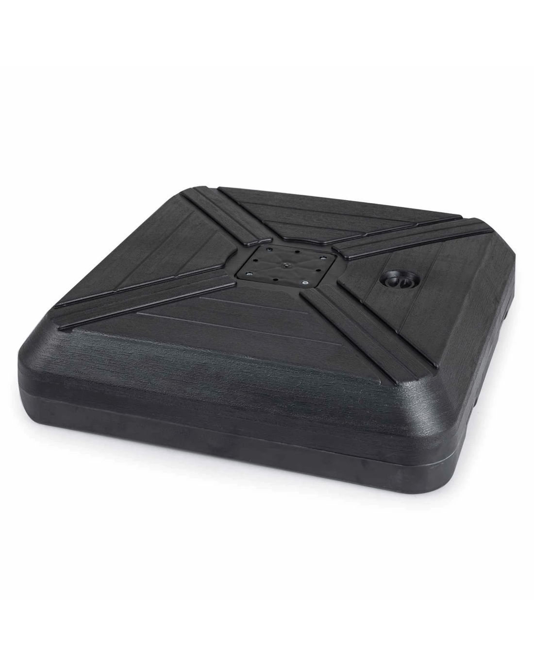 The refillable reservoir includes both a water inlet spout and a drain spout, allowing quick filling with water, sand, or water and sand to enhance stability. Its reinforced HDPE shell provides sun protection, crack resistance, and fade resistance, ensuring reliable long-term performance outdoors. With the included metal cross base and fastening screws, the stand securely fits offset hanging umbrellas. In addition, completing the design are built-in 2 wheels and grooved handles that make repositioning smooth and effortless. From patios to poolside spaces, this functional umbrella base is built for versatile and dependable outdoor use.