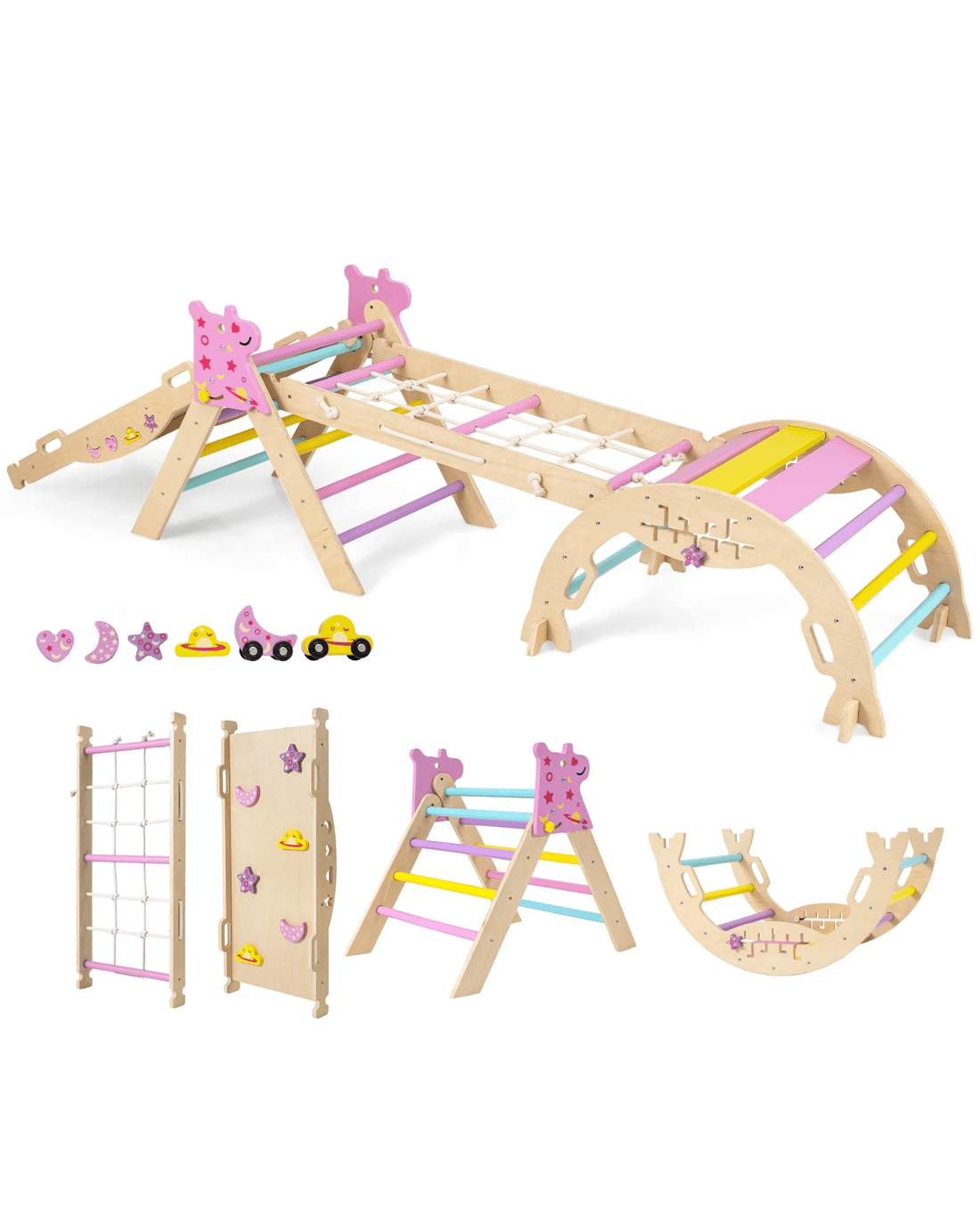 Costway Climb Playset 8in1 Foldable Triangle Climbing Frame Rock Arch - Multi