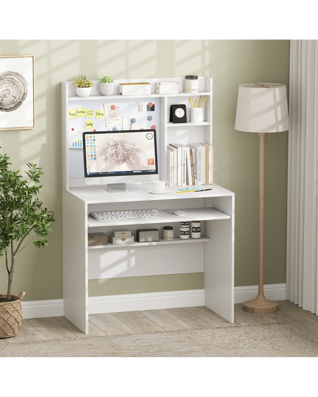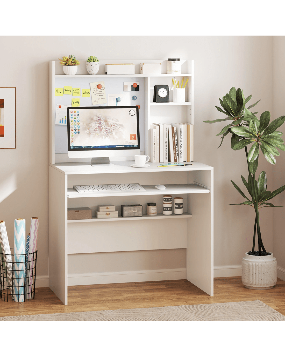 Costway Computer Desk w/Bulletin Board Keyboard Tray & Storage Shelf Home Office Table