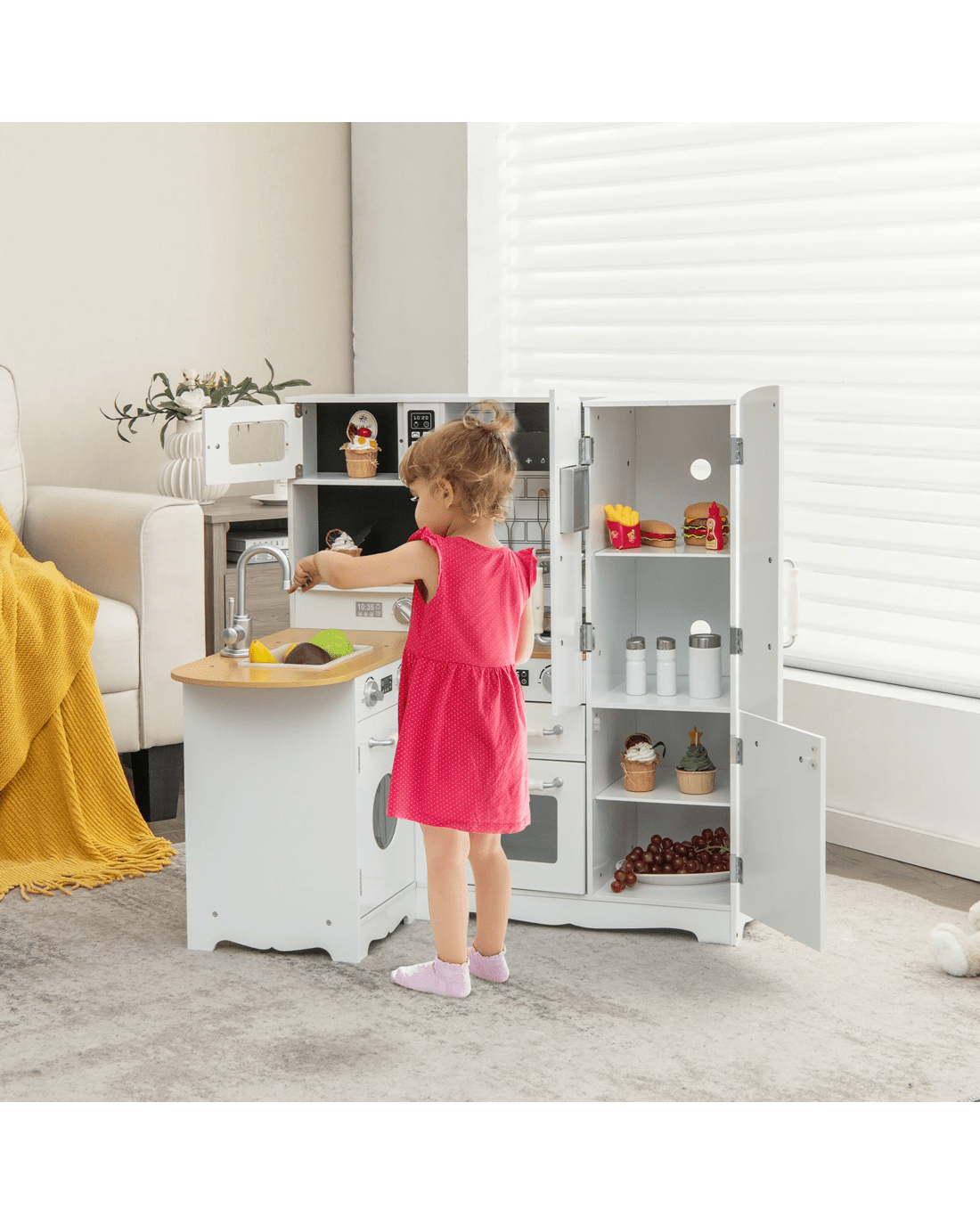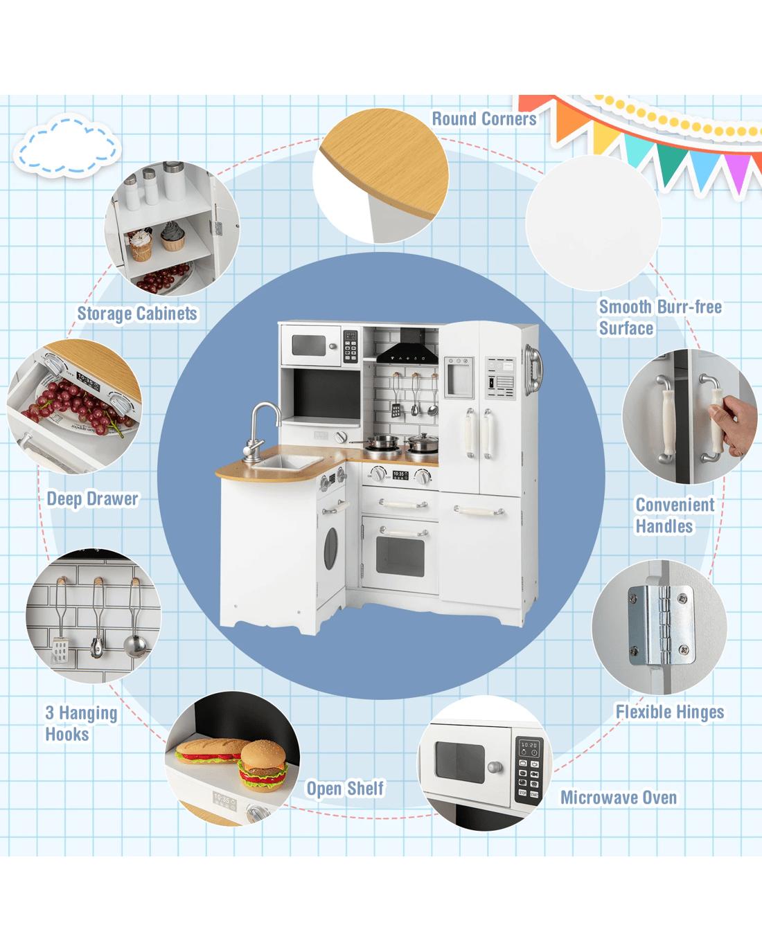 Costway Corner Play Kitchen Wood Pretend Cooking Toy