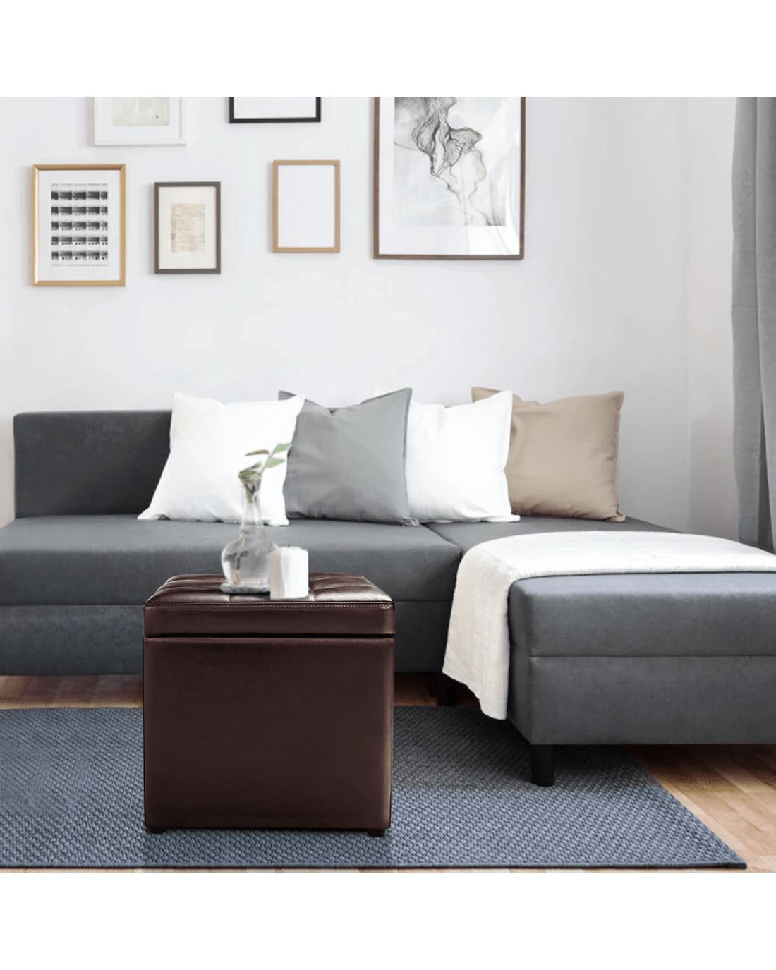 Sold by CostwayCostway Cube Storage Ottoman Pouf Storage Box Seat Foot Stool PU Leather Footstool 40cm - Brown