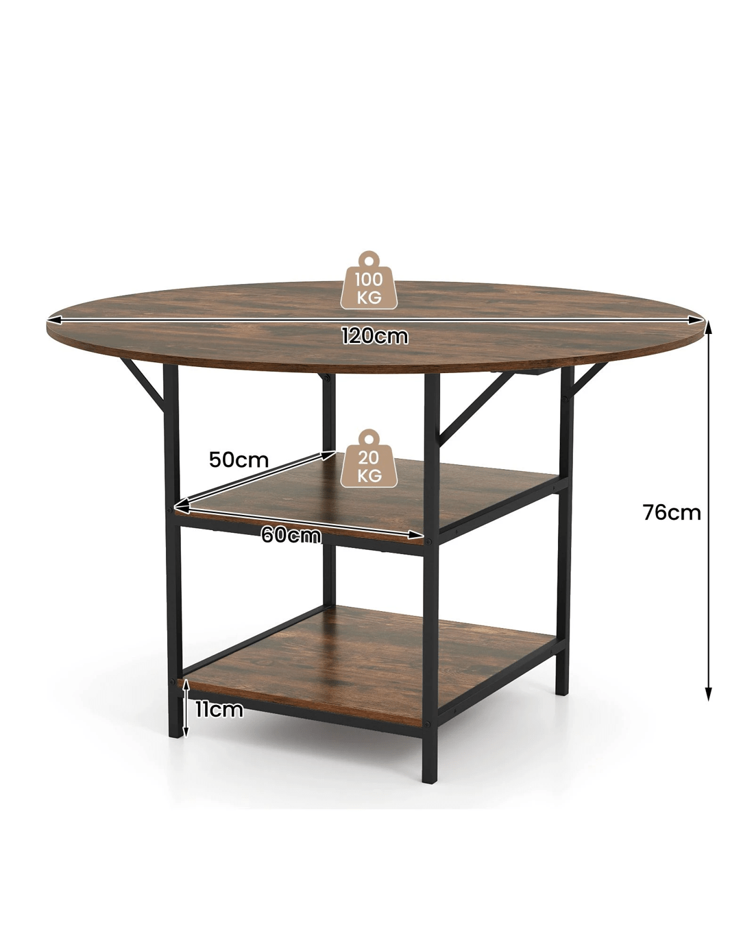 120 cm spacious round tabletop comfortably seats 4-6 people