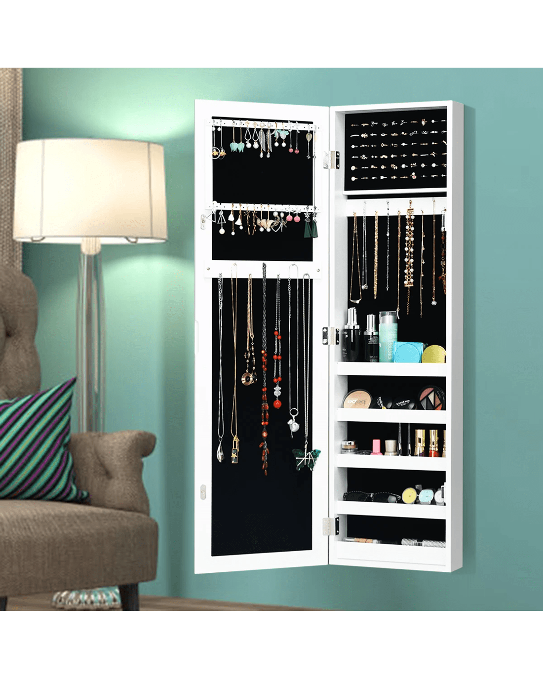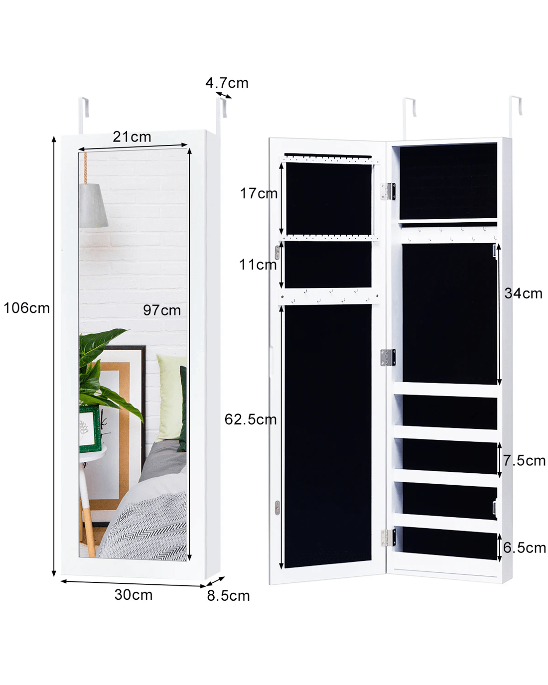 Costway Door/Wall Mounted Mirror Jewellery Cabinet Makeup Cosmetics Storage Organiser Box