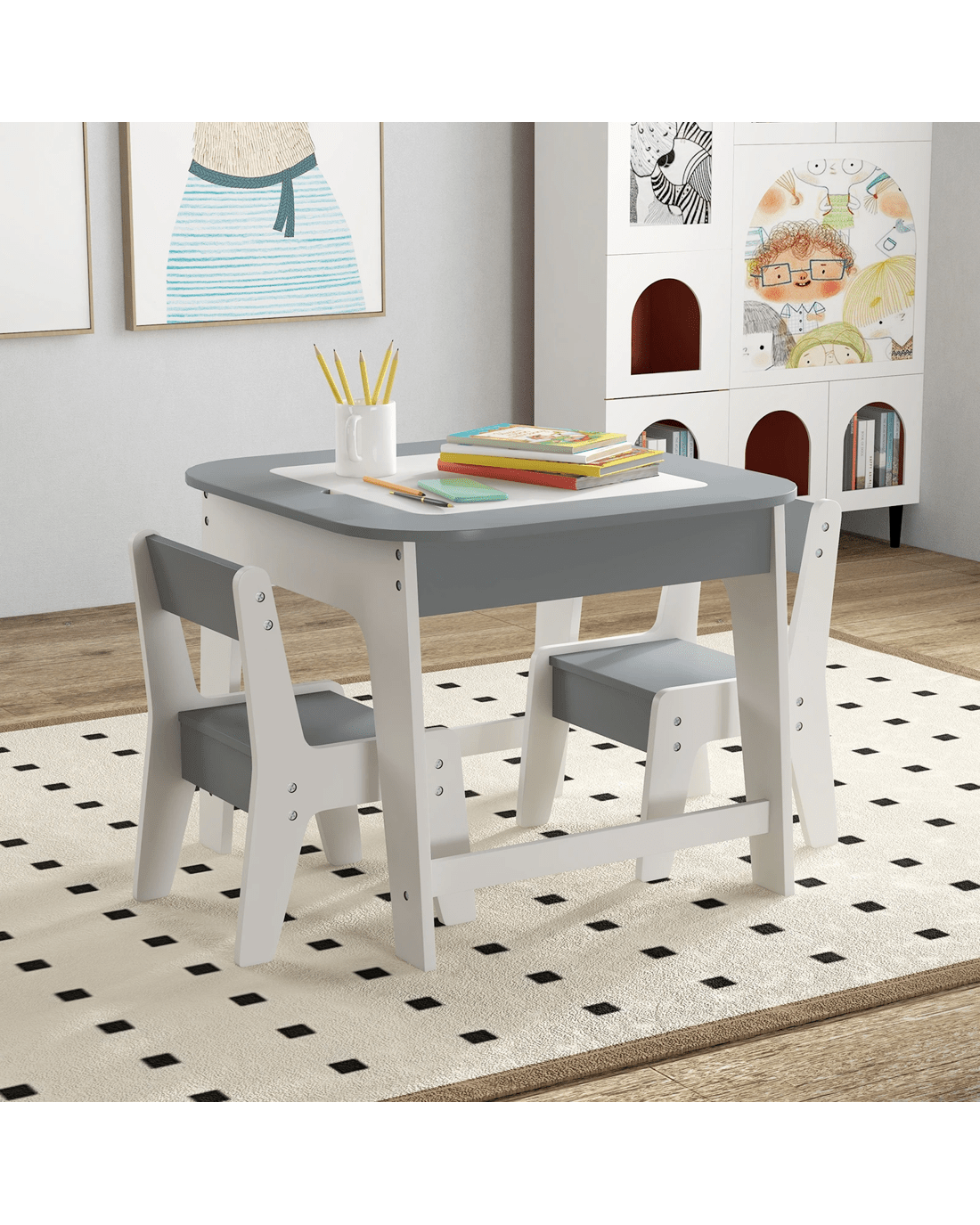 Sold by CostwayCostway Double-Sided Kids Drawing Table & Chairs Set - Grey