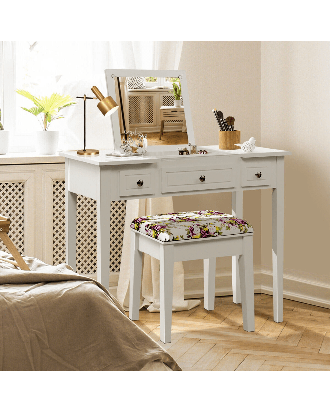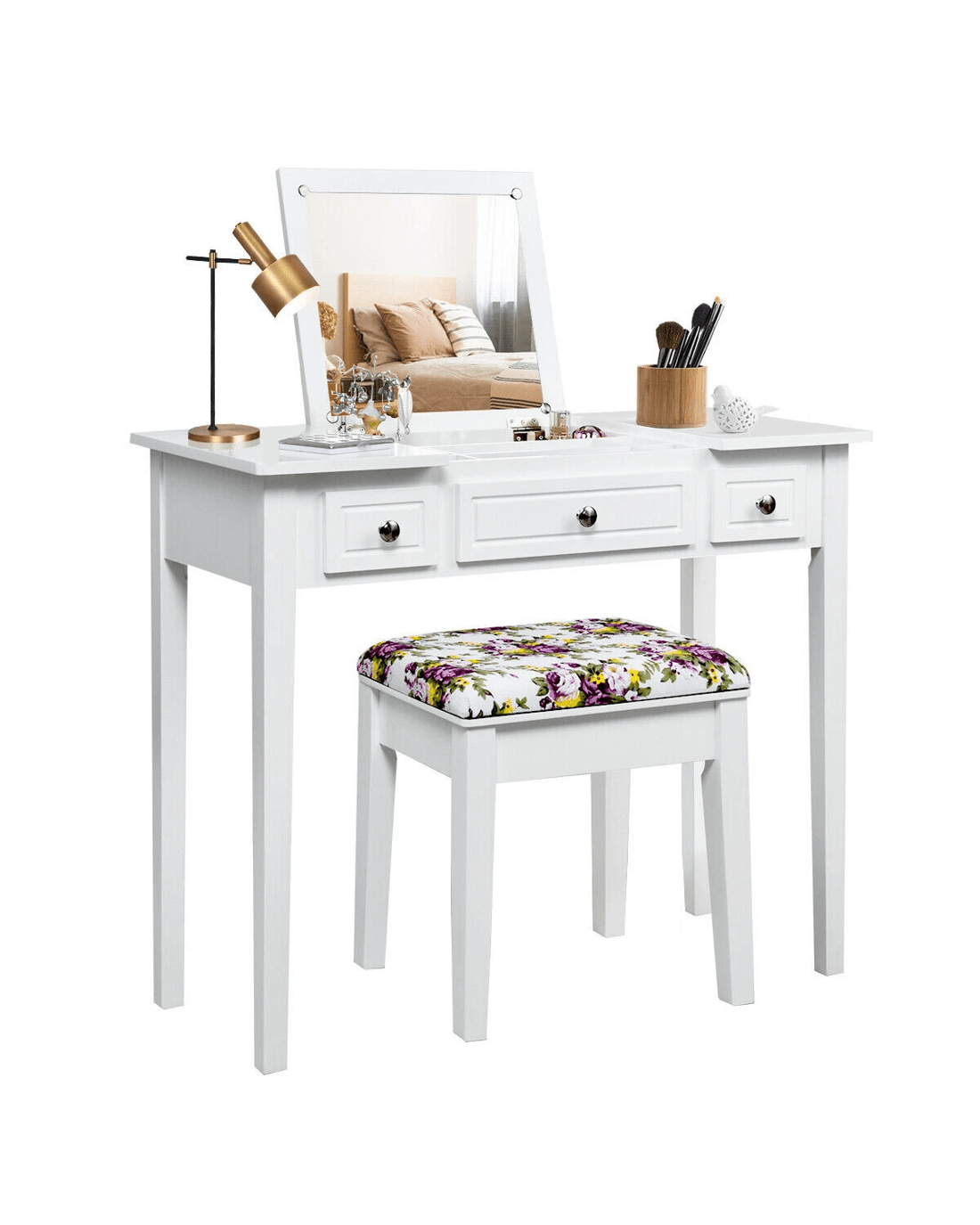 Sold by CostwayCostway Dressing Table Set W/Flip Top Mirror & Drawer Bedroom