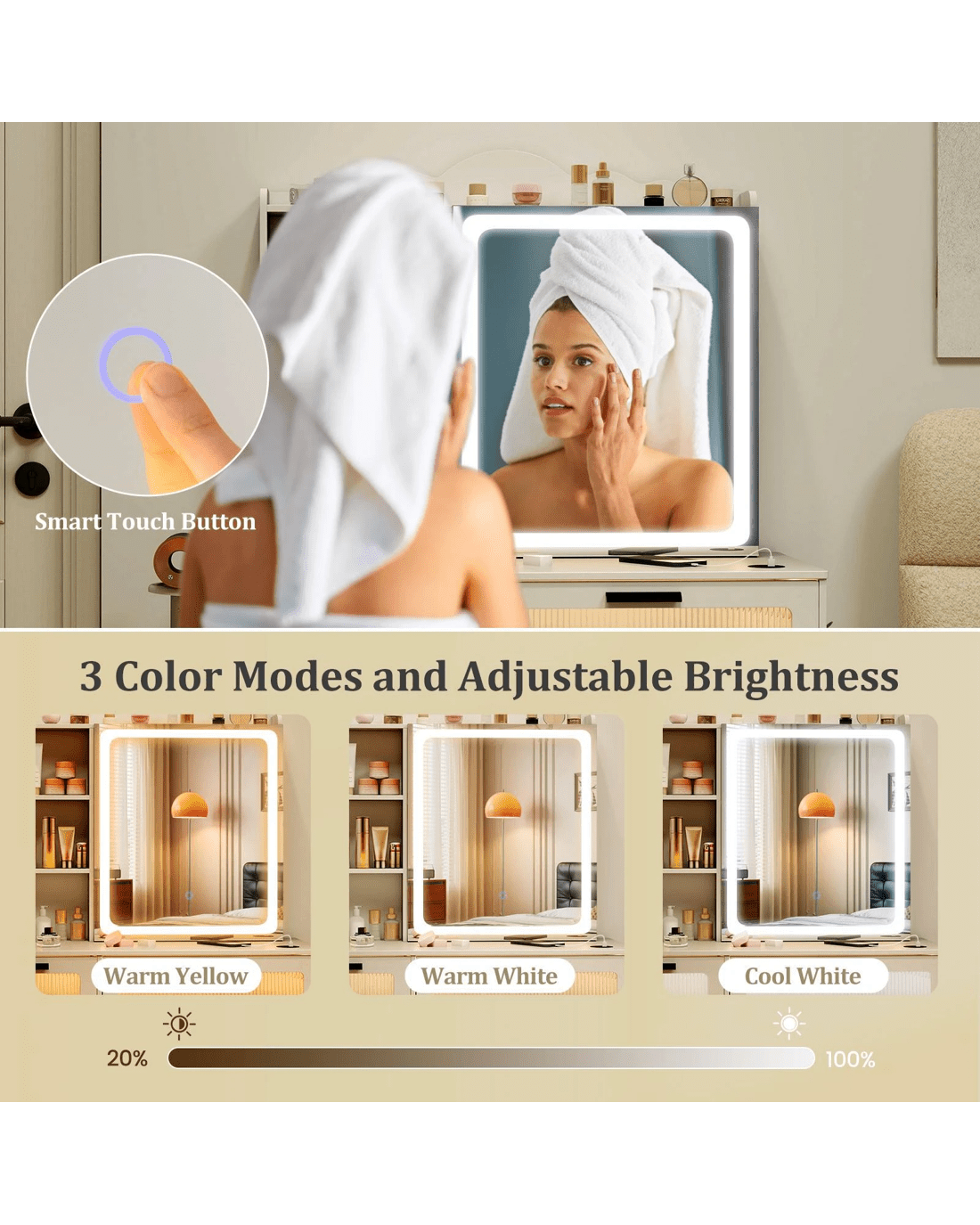 Equipped with a 3-color LED lighted mirror