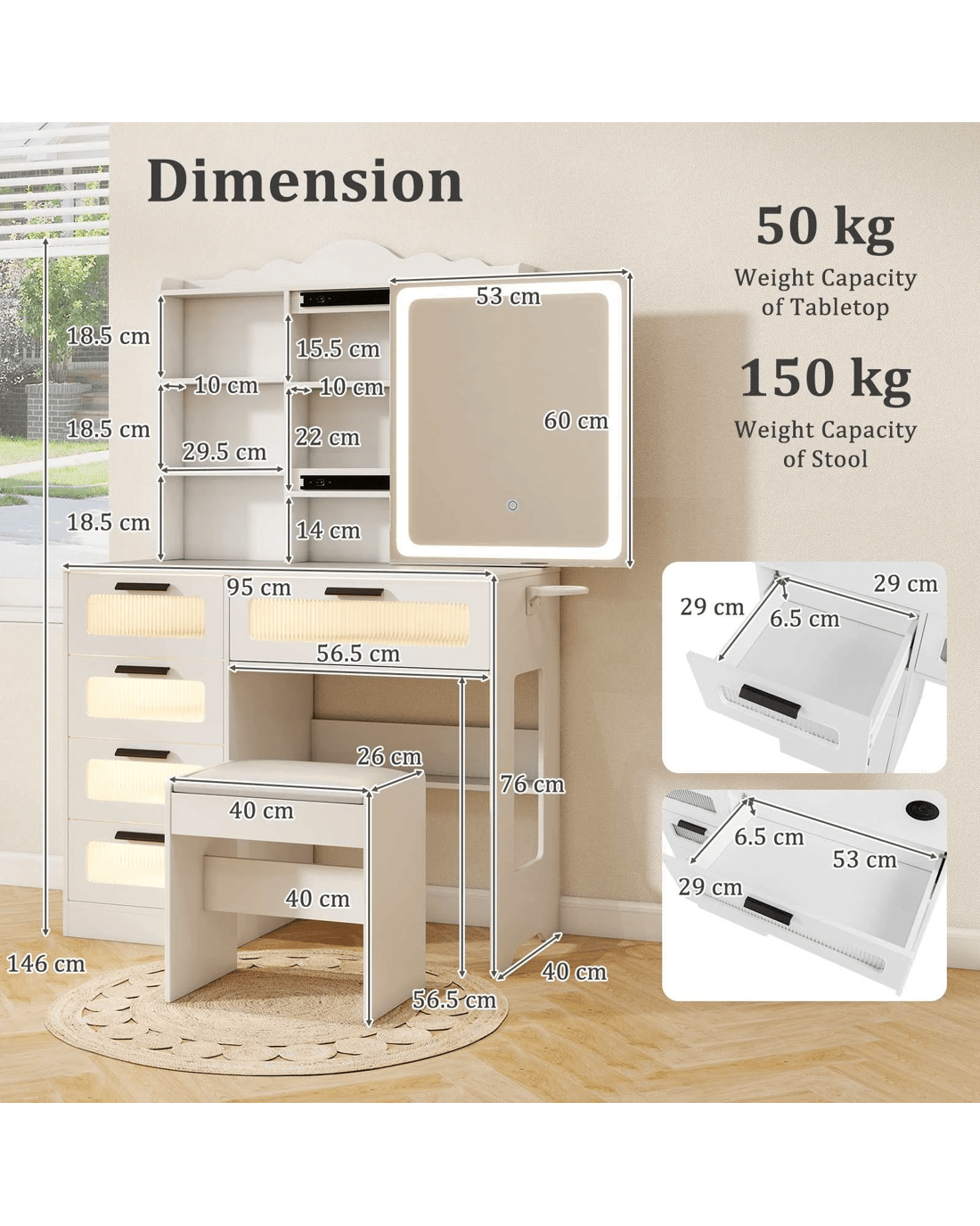 Weight Capacity of Tabletop: 50 kg